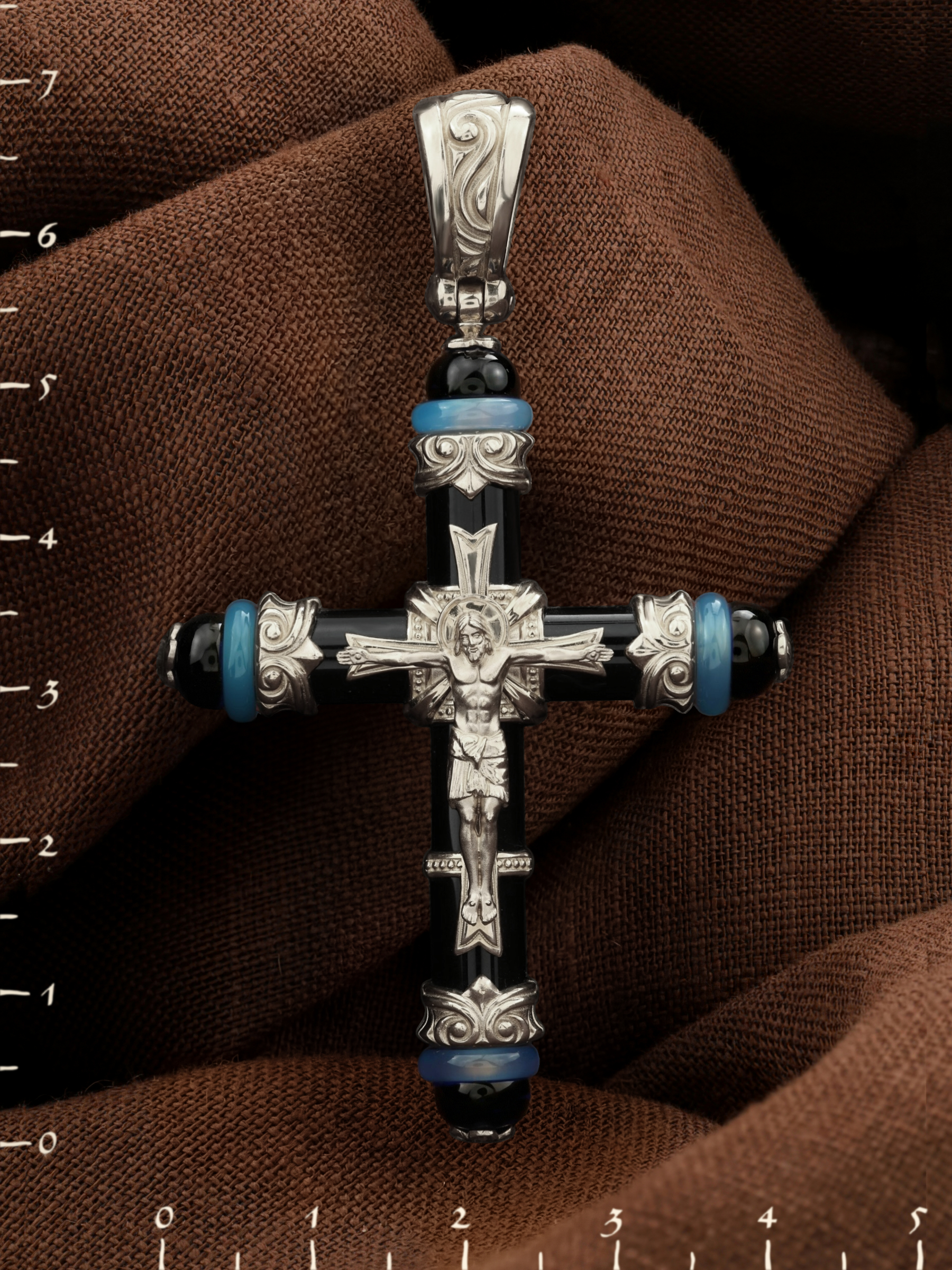Крест из белого золота c ониксом и агатом