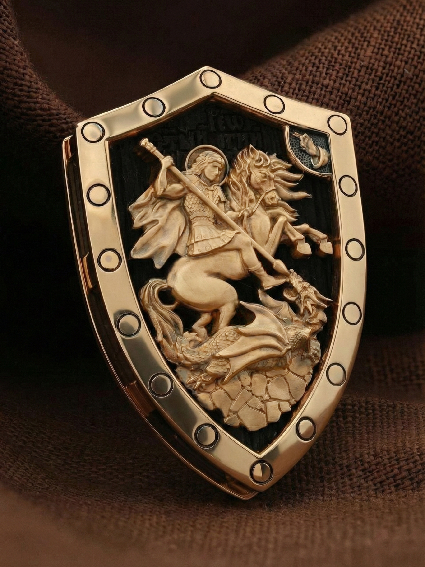 Образок из золота c эбеновым деревом