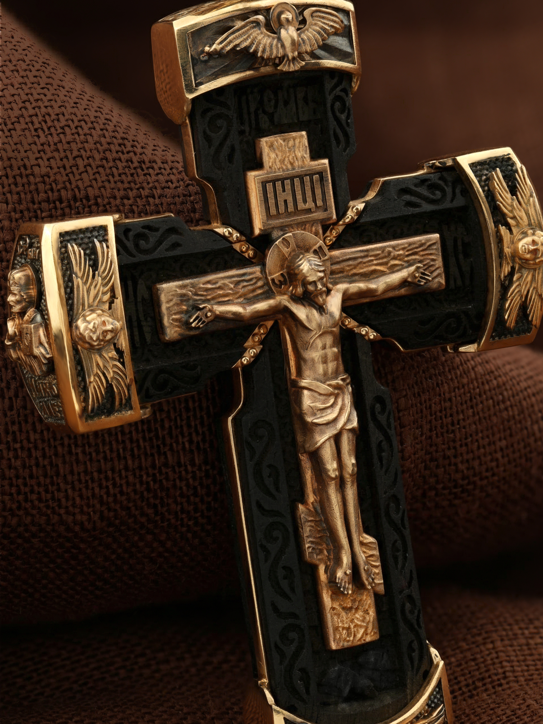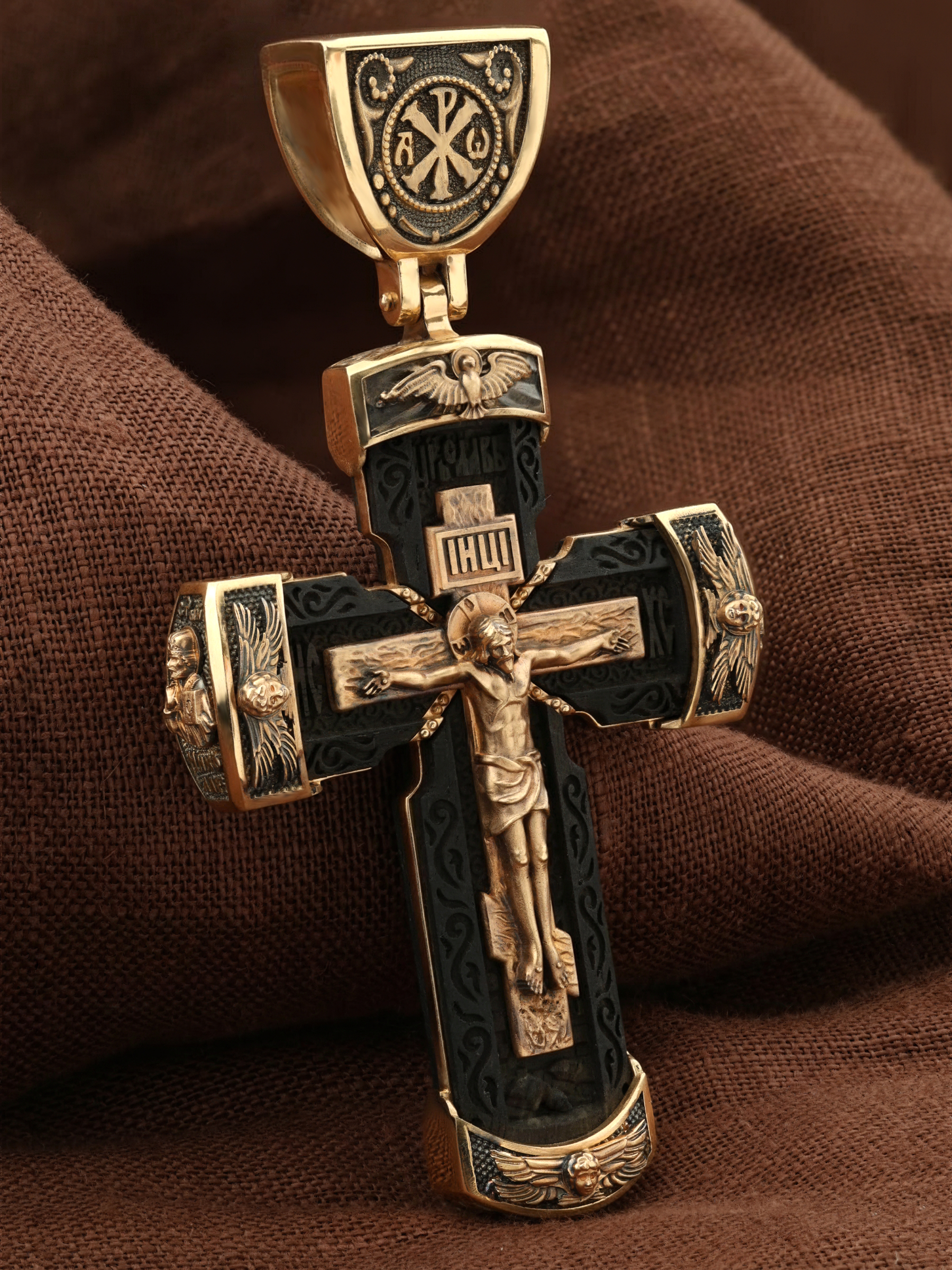 Крест из золота c эбеновым деревом