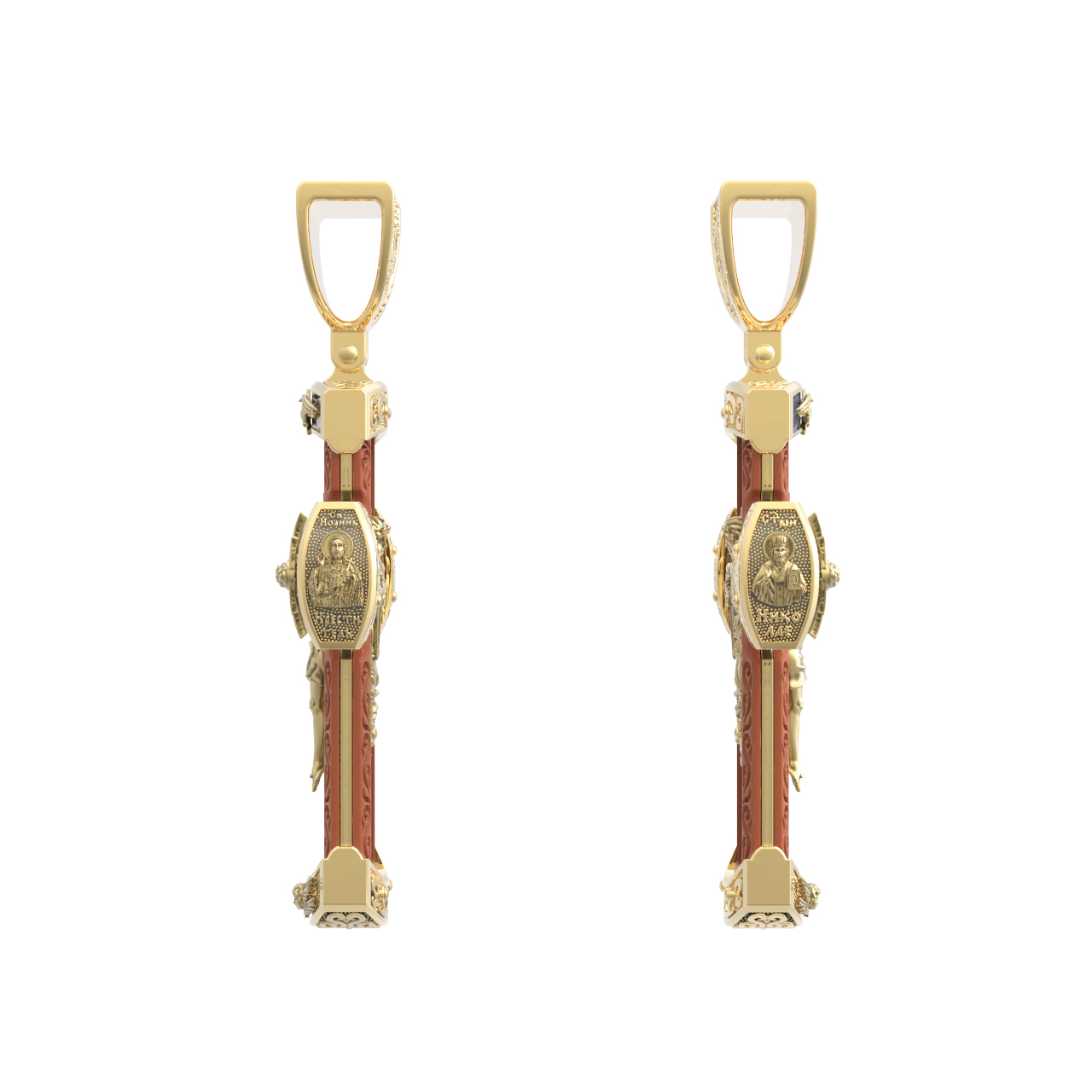 На торце изделия с левой стороны помещена икона Святого Николая Чудотворца — самый почитаемый в Православной Церкви, которого еще называют Николай Угодник за то, что он угодил своей жизнью Богу. Николай Чудотворец, помощник в делах, покровитель учащихся, утешитель обиженных и нуждающихся, целитель самых страшных и тяжелых недугов, предстатель и молитвенник за людей перед Богом. Также Святитель Николай Чудотворец известен своими молитвами за путешественников, когда непрестанный ветер и бушующие волны утихают и корабль заходит в спокойную гавань. На торце изделия с правой стороны — икона Святого Иоанна Крестителя. Святой Иоанн был последним пророком Израиля. Он призывал к покаянию, предвозвещая приближение Царствия Небесного (Мф. 3, 2), и удостоился стать Крестителем Христа. Иисус Христос говорит о нем: «Сей есть о котором написано: «Вот, Я посылаю Ангела Моего пред лицем Твоим, который приготовит путь Твой пред Тобою» (Лк. 7, 27). И еще: «Из рожденных женами нет ни одного пророка больше Иоанна Крестителя» (Лк. 7, 28).