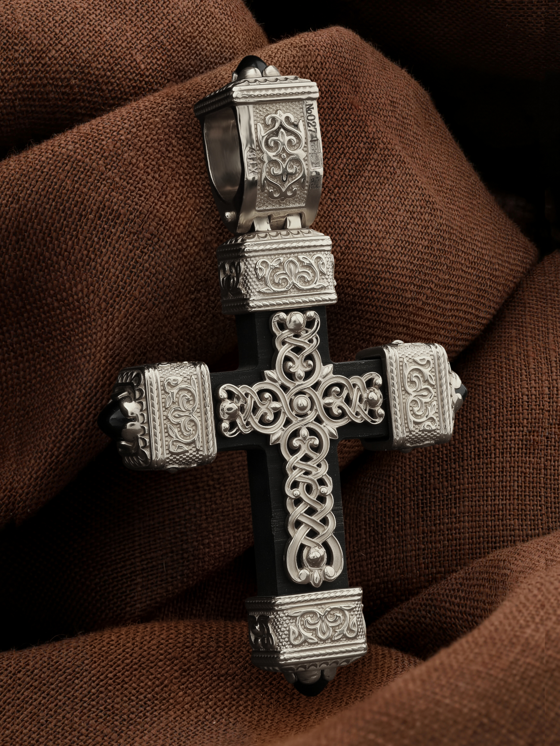Крест из белого золота c эмаль, ониксом и эбеновым деревом