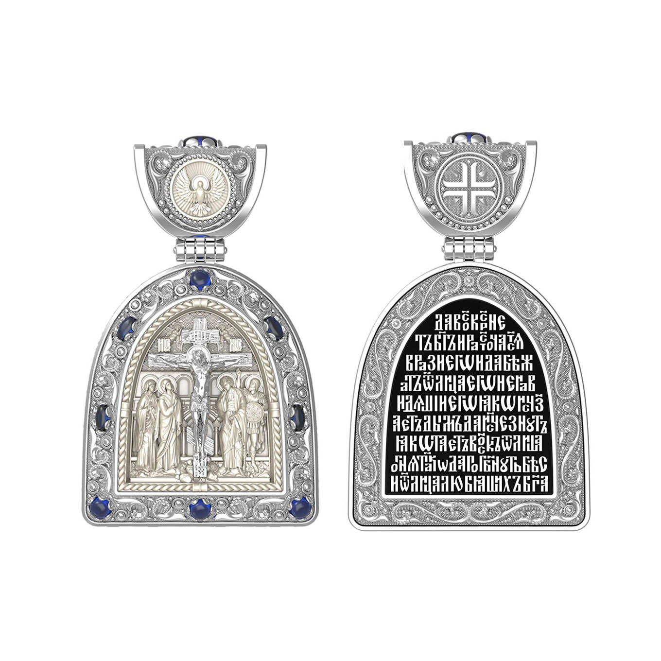Образок из белого золота c эмаль, сапфиром и бивнем мамонта