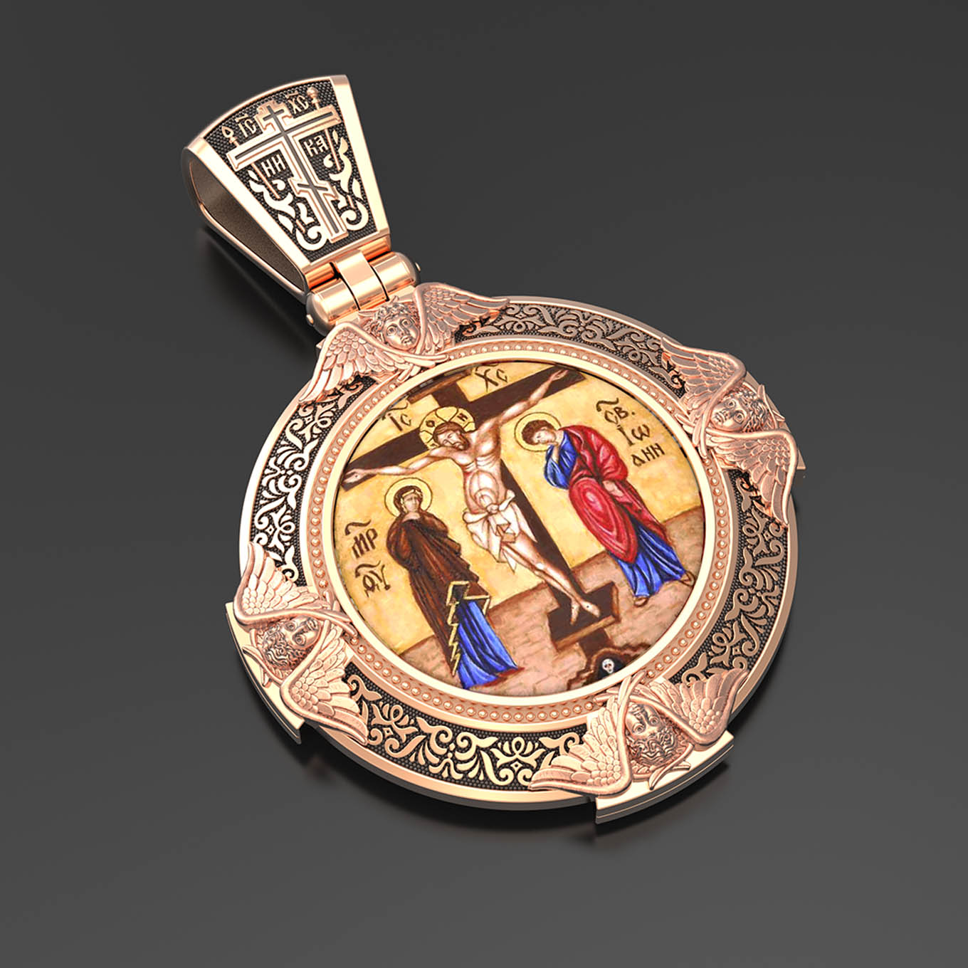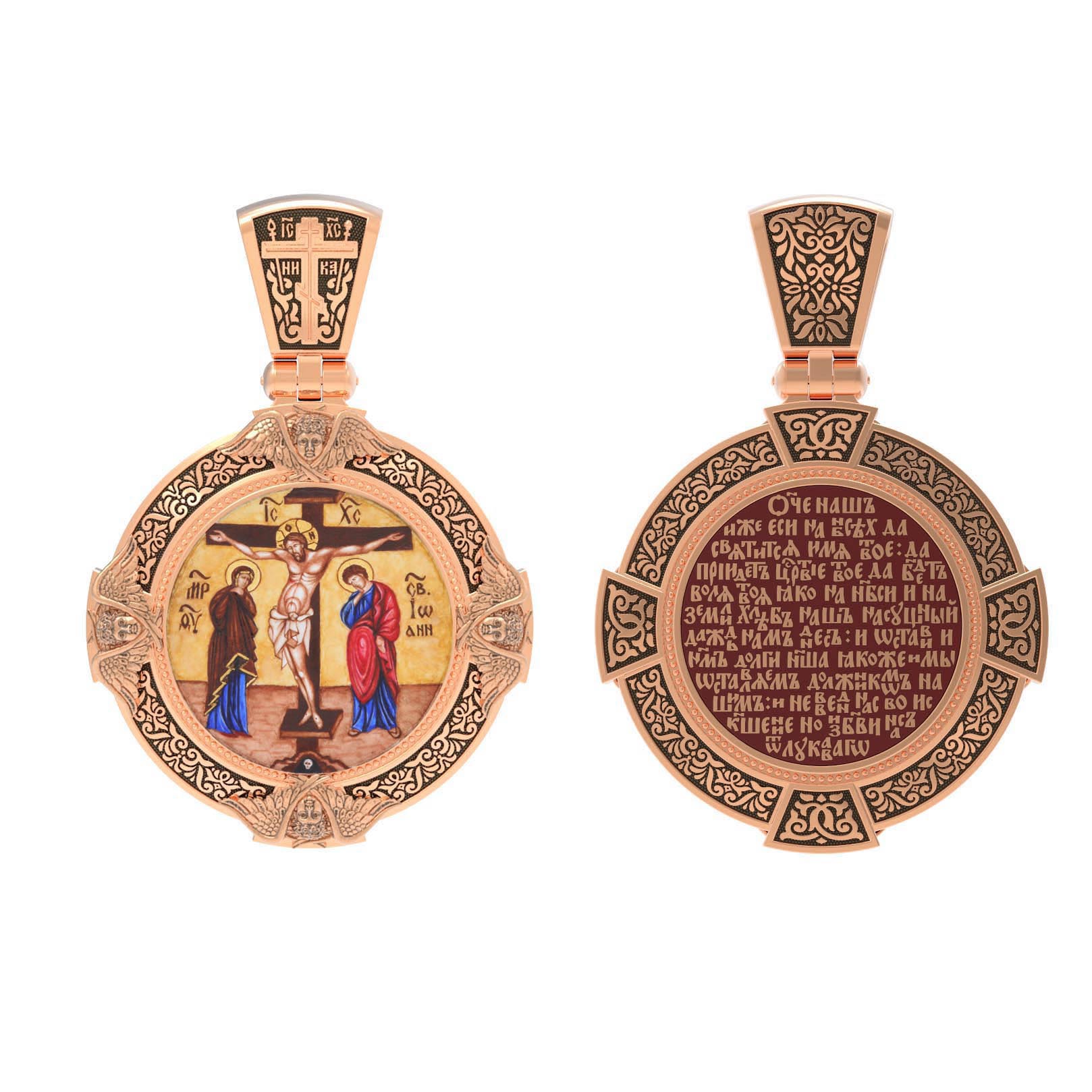 Образок из золота c эмаль, иконописью и темперой