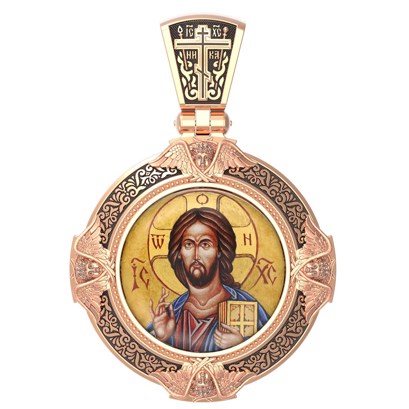 Образок из золота c эмаль, иконописью и темперой