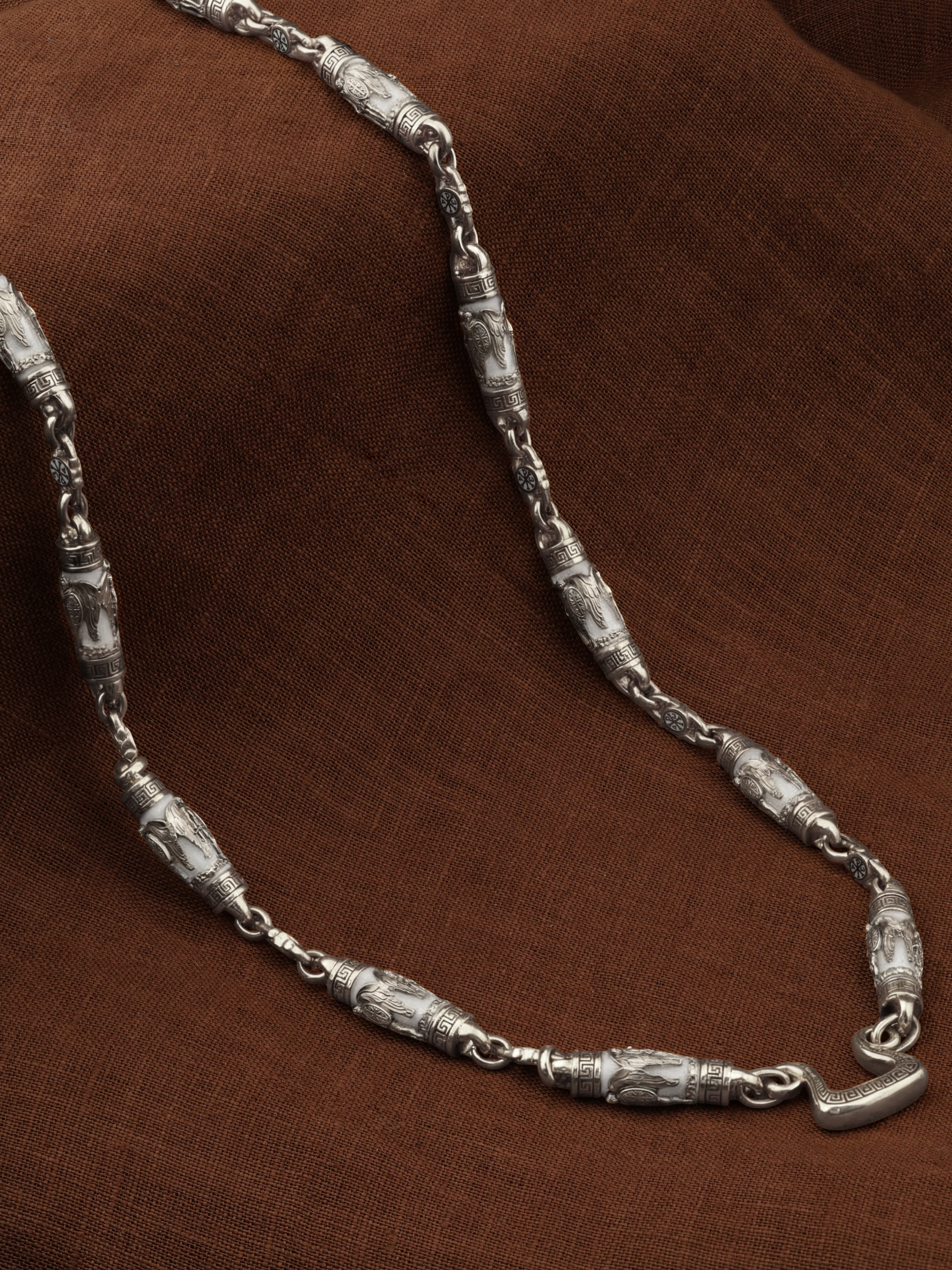 Цепь из белого золота c эмаль и бивнем мамонта