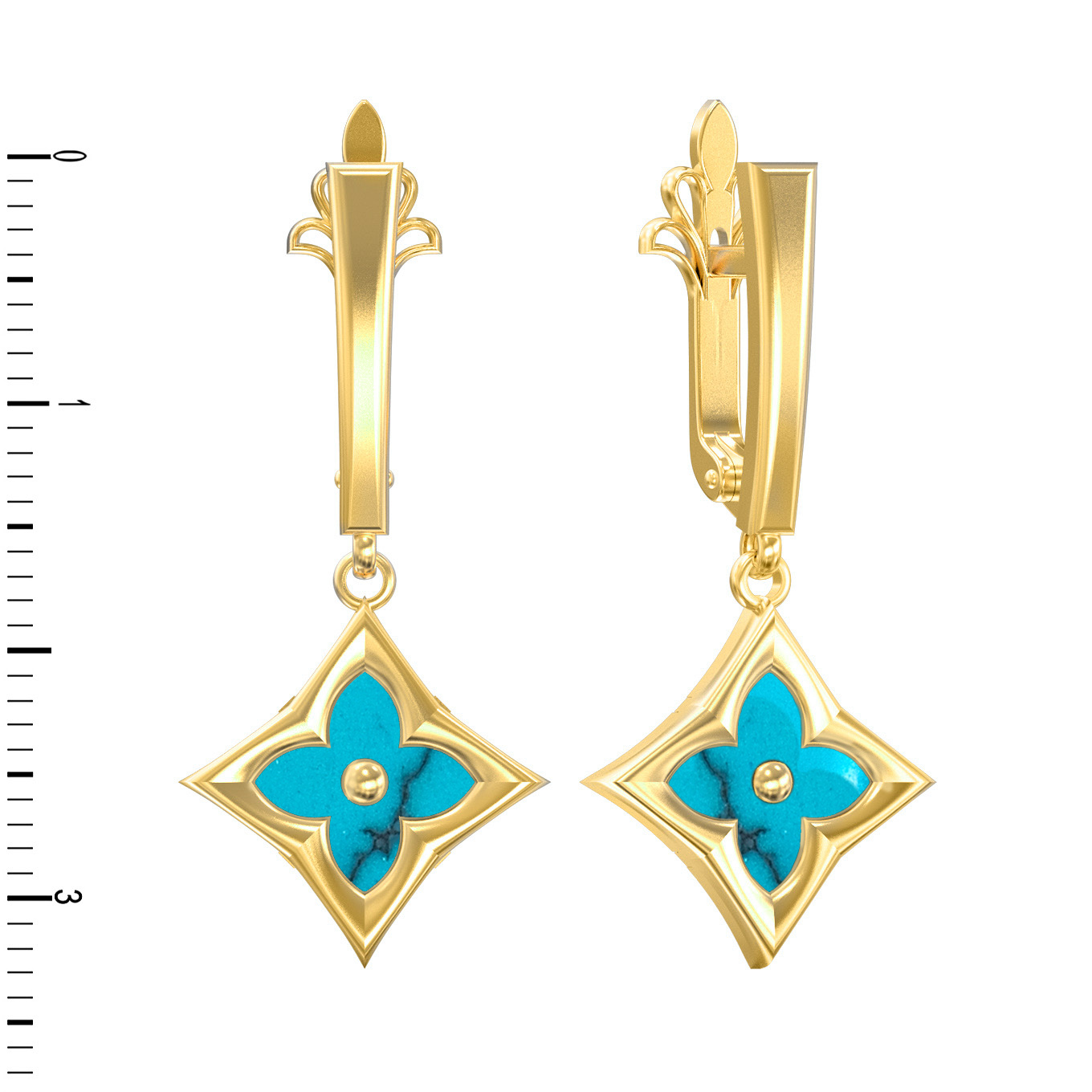 Серьги из лимонного золота c бирюзой