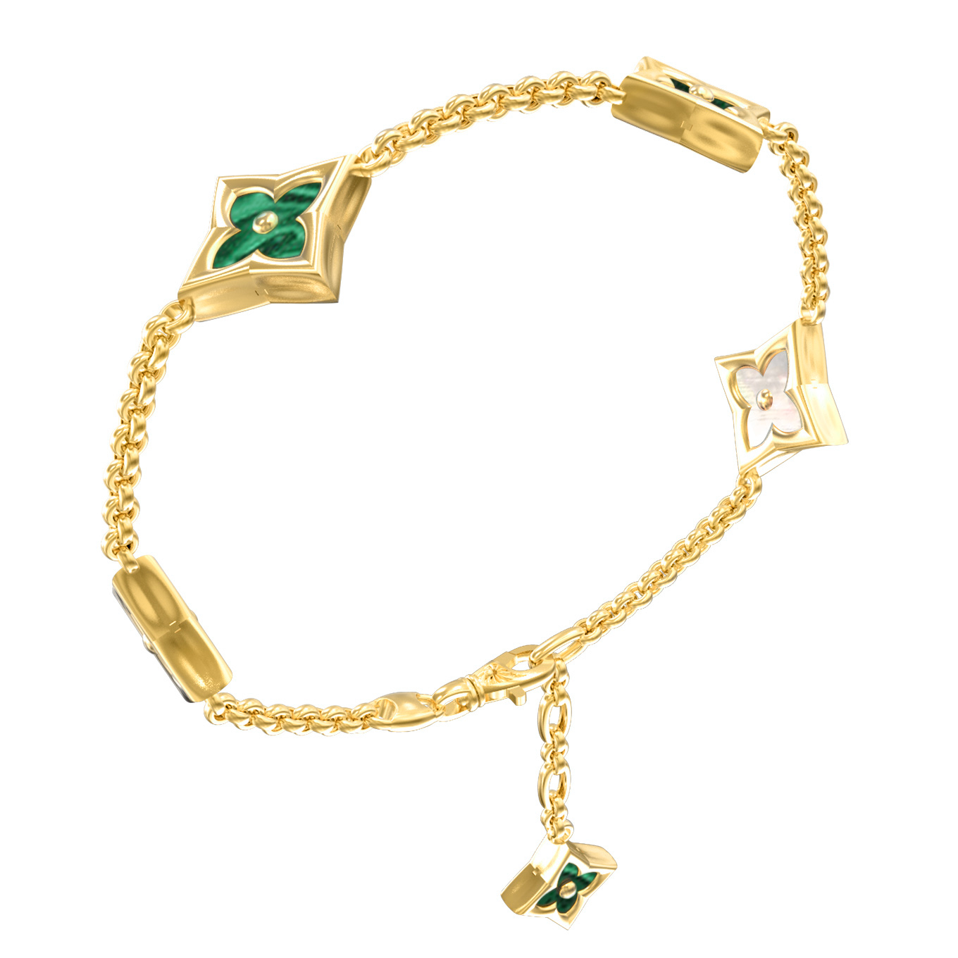 Браслет из лимонного золота c малахитом и перламутром
