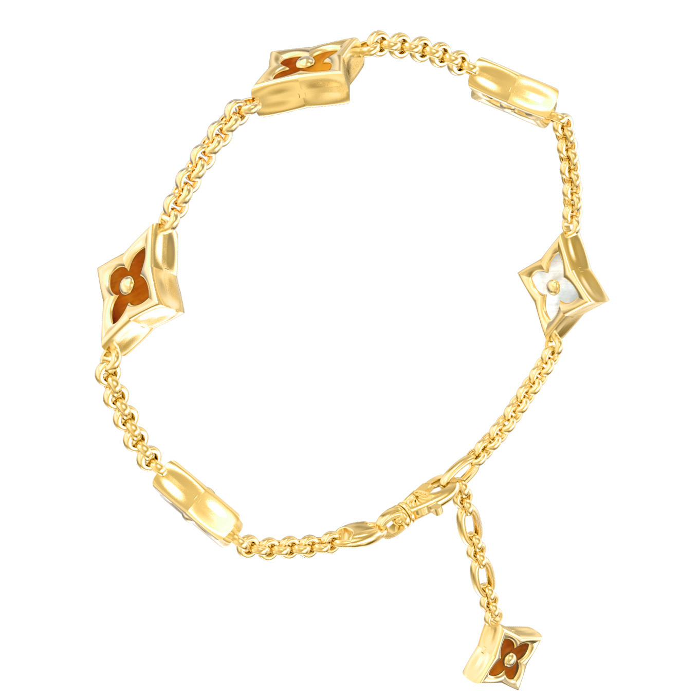 Браслет из лимонного золота c тигровым глазом и перламутром