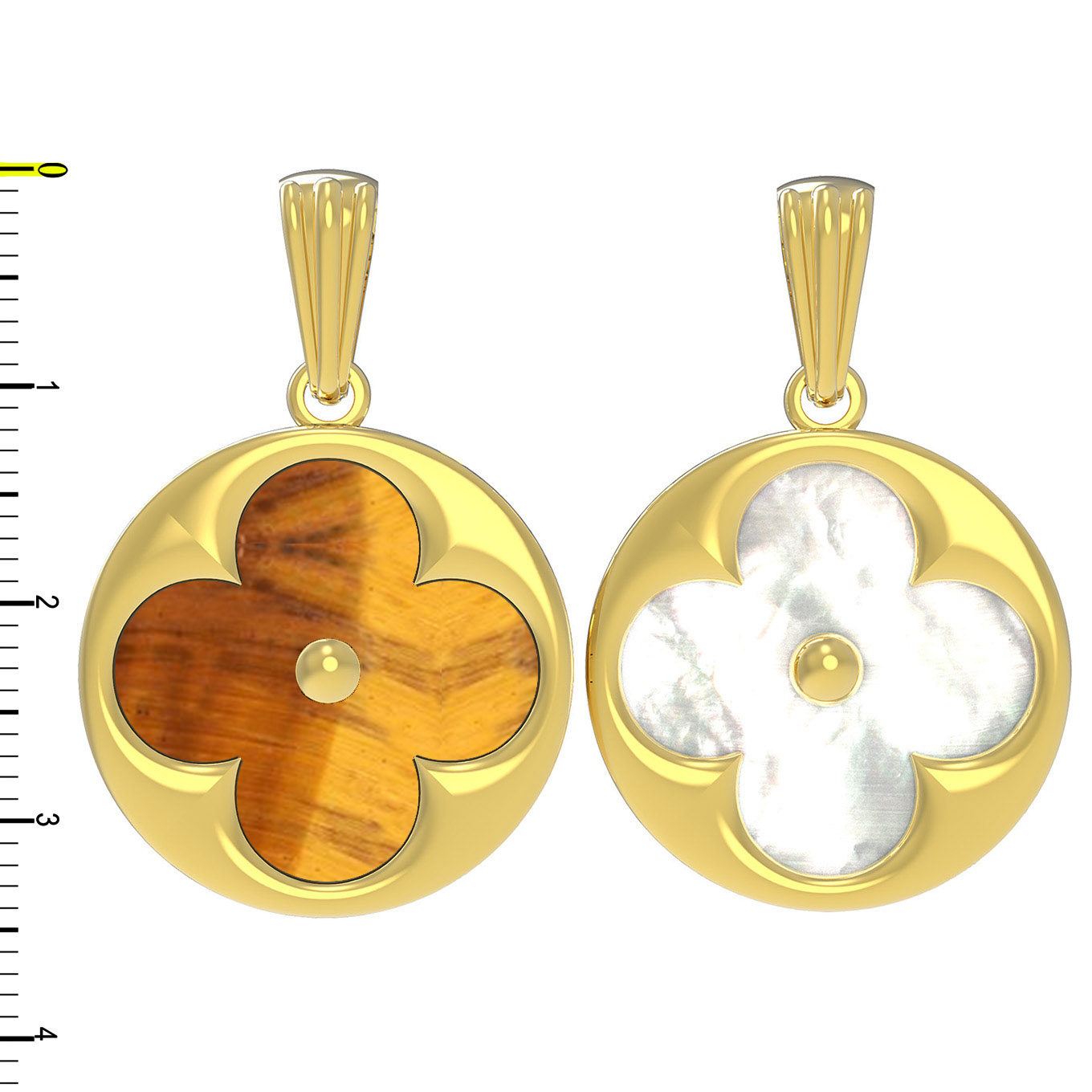 Подвеска из лимонного золота c тигровым глазом и перламутром