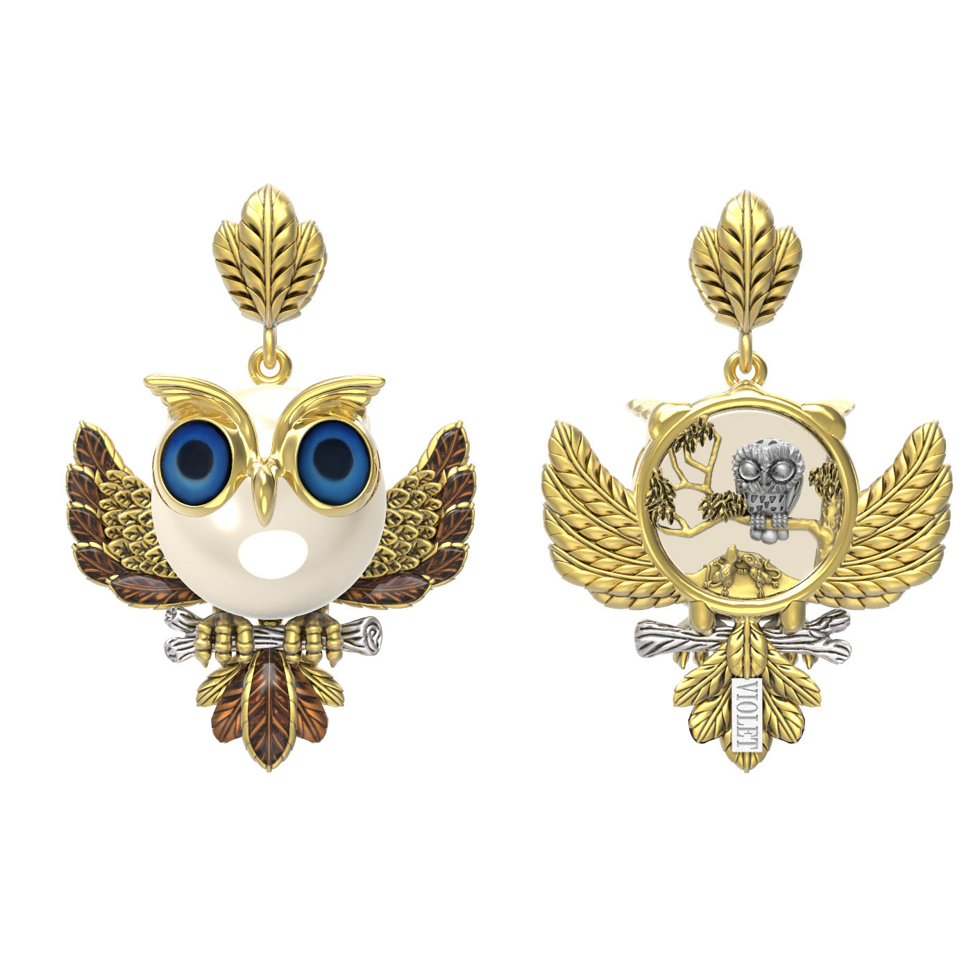 Подвеска из лимонного золота c эмаль и жемчугом