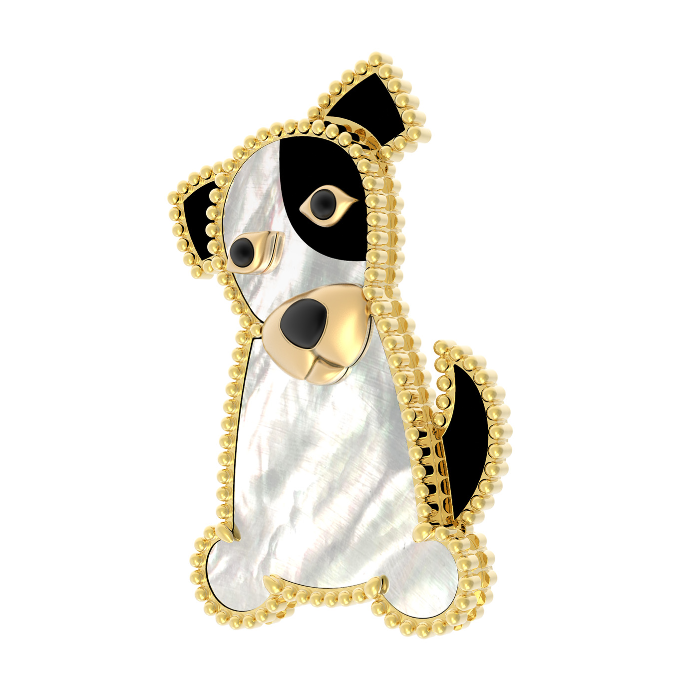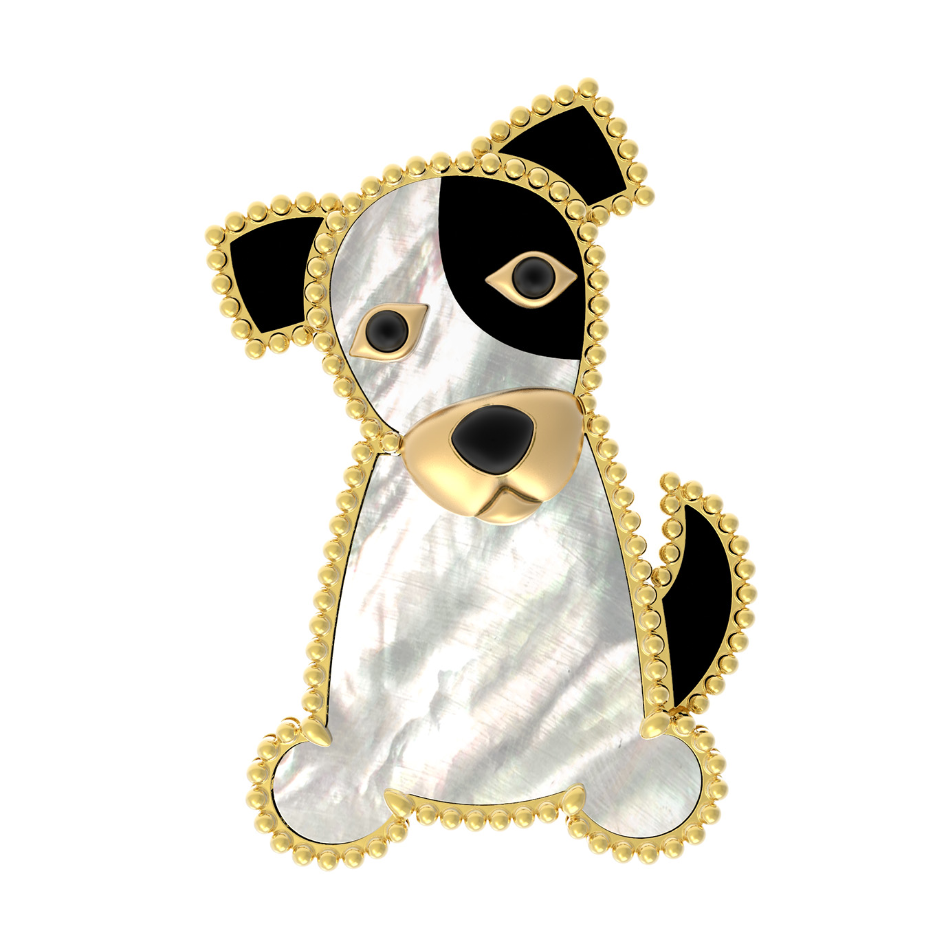 Брошь из лимонного золота c эмаль, ониксом и перламутром