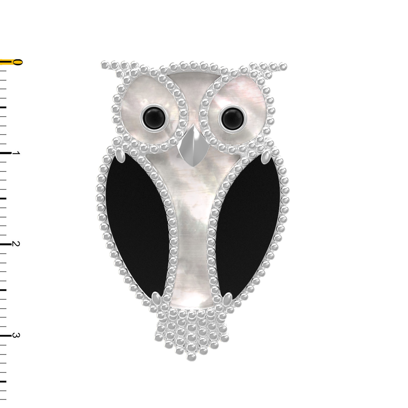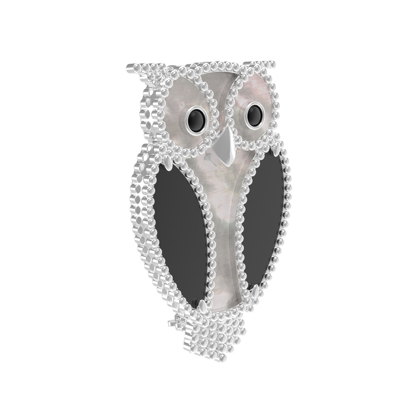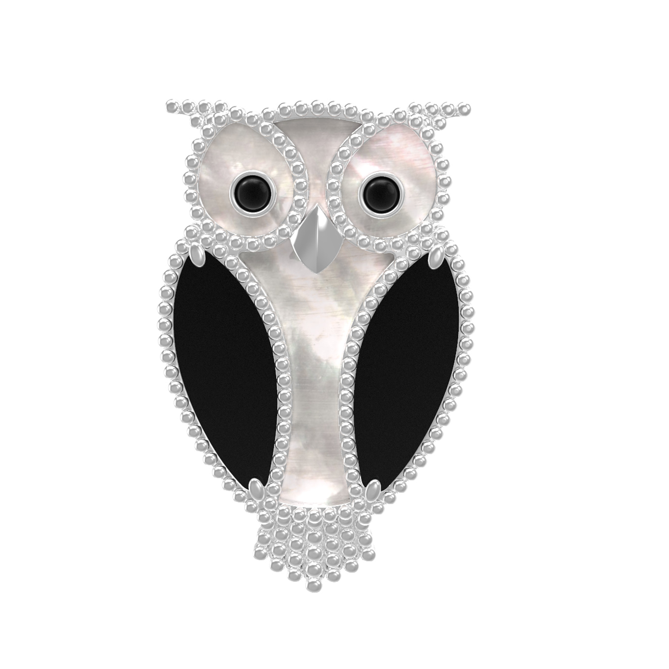 Брошь из белого золота c эмаль, ониксом и перламутром