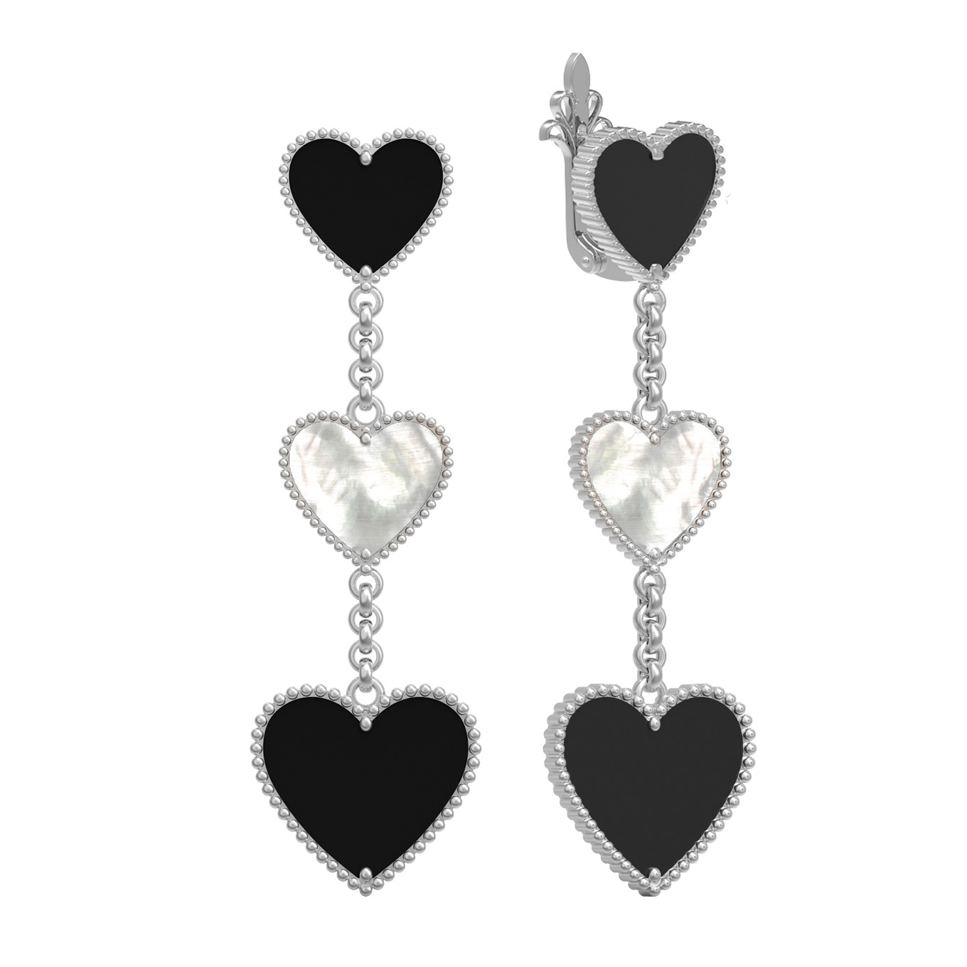 Серьги из белого золота c ониксом и перламутром