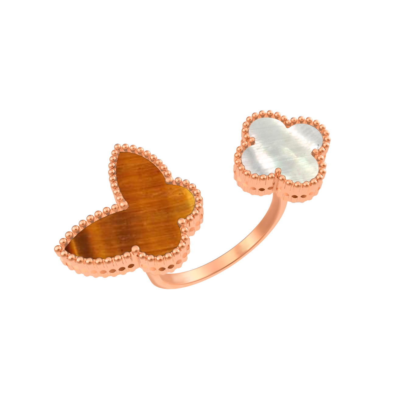 Кольцо из золота c тигровым глазом и перламутром
