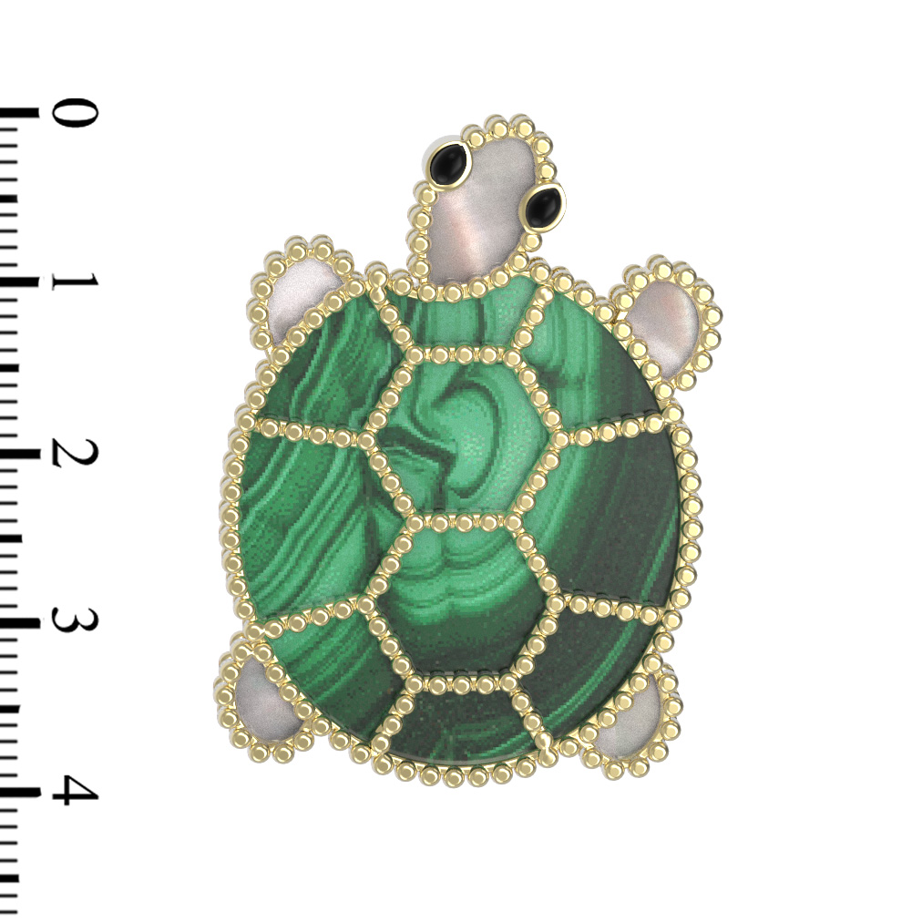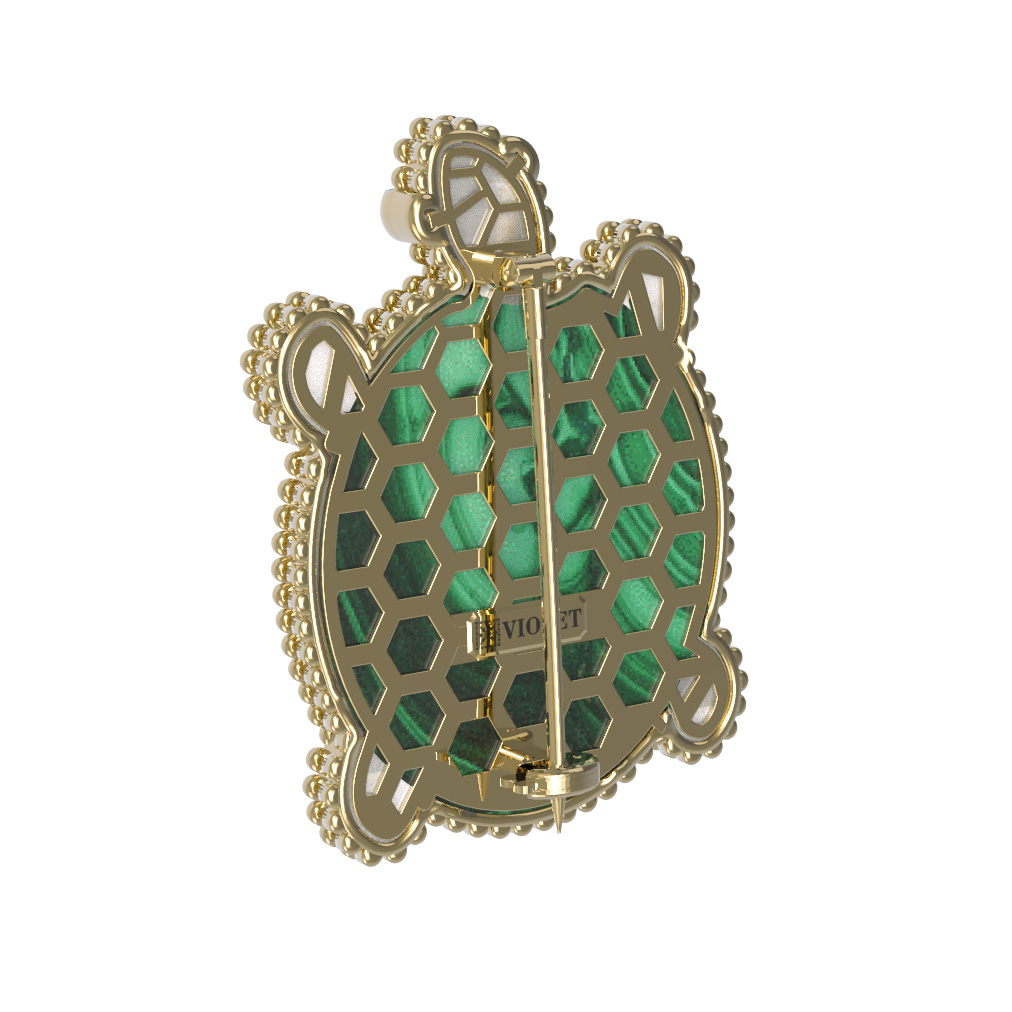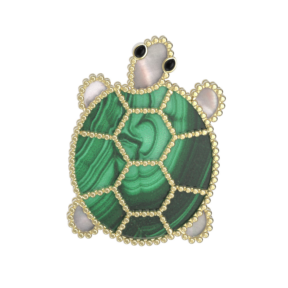 Брошь из лимонного золота c эмаль, малахитом и перламутром