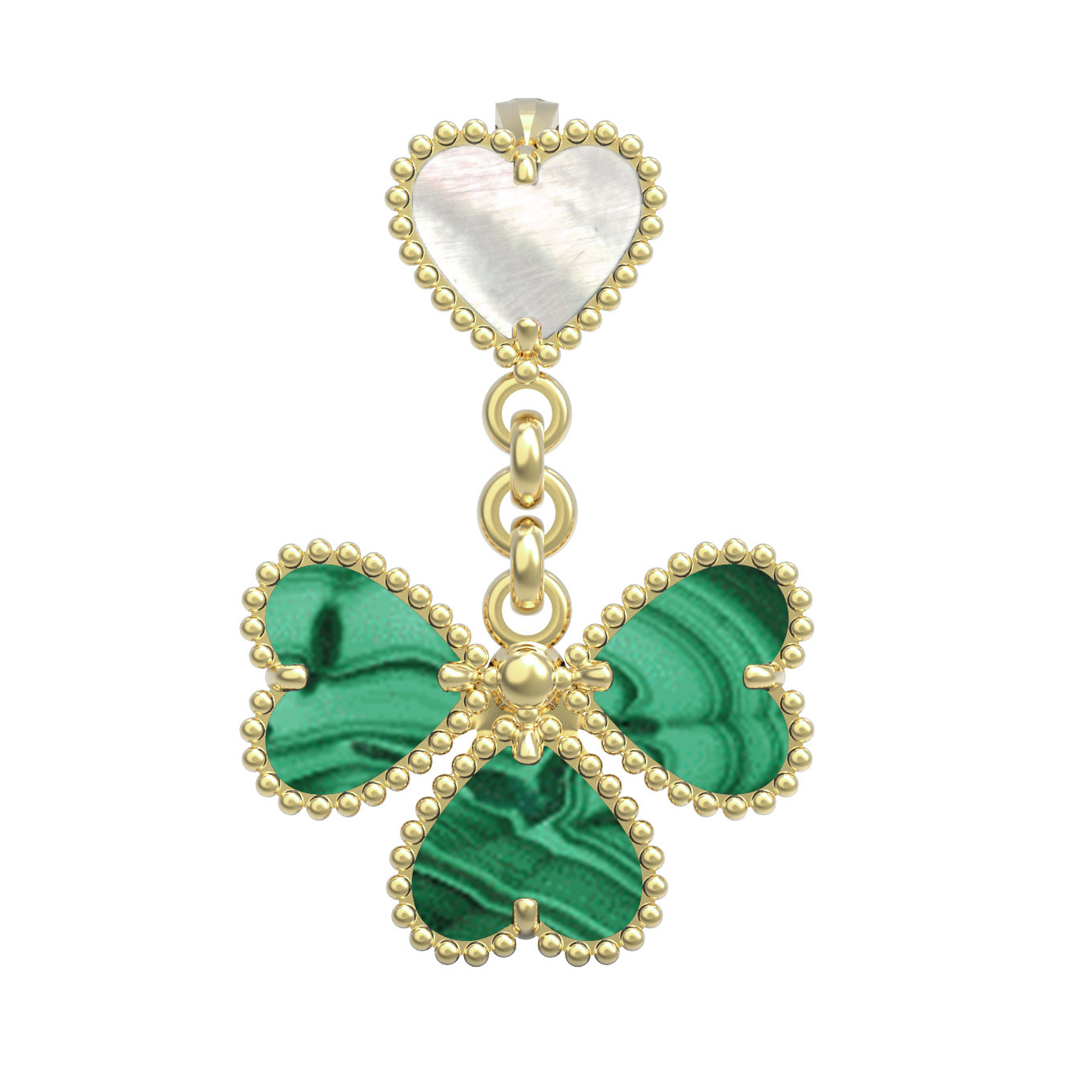 Подвеска из лимонного золота c малахитом и перламутром