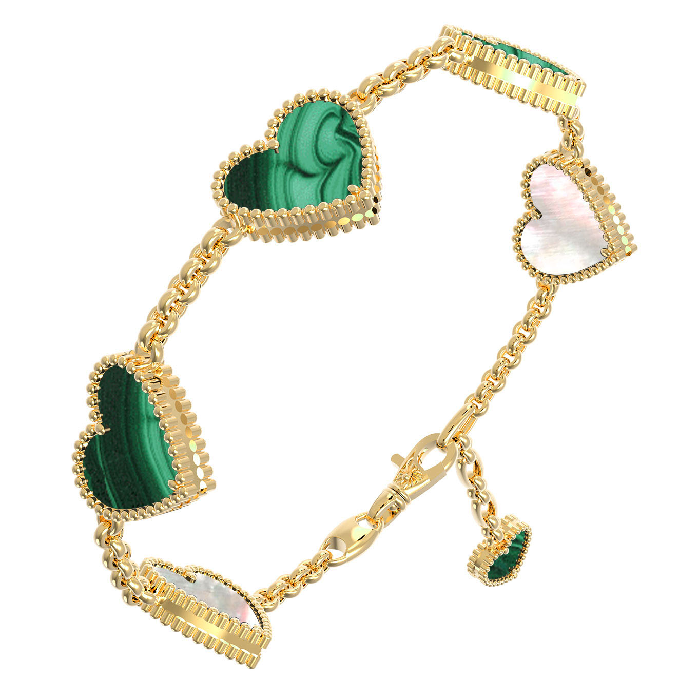 • Браслет из лимонного золота c малахитом и перламутром