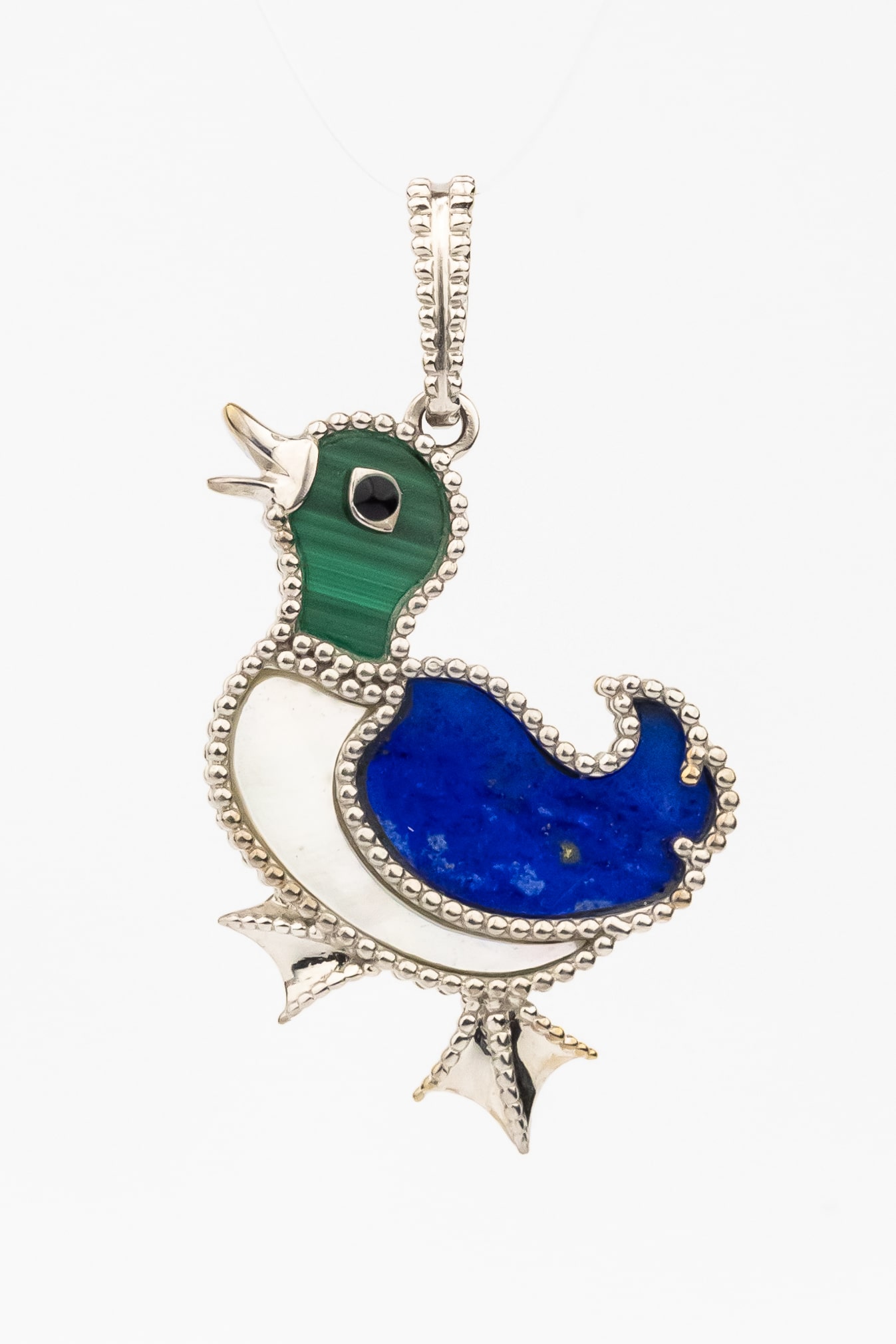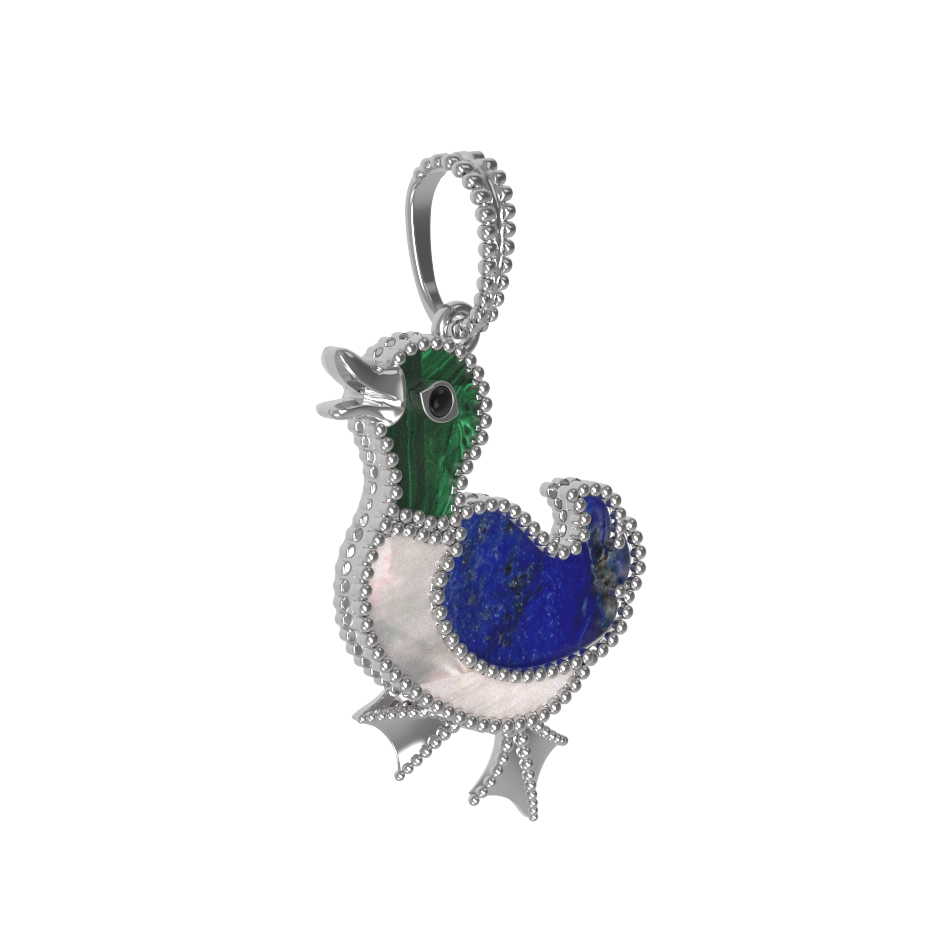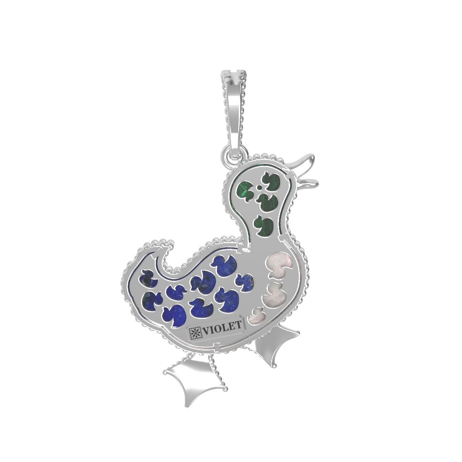 Подвеска из белого золота c эмаль, лазуритом, малахитом и перламутром