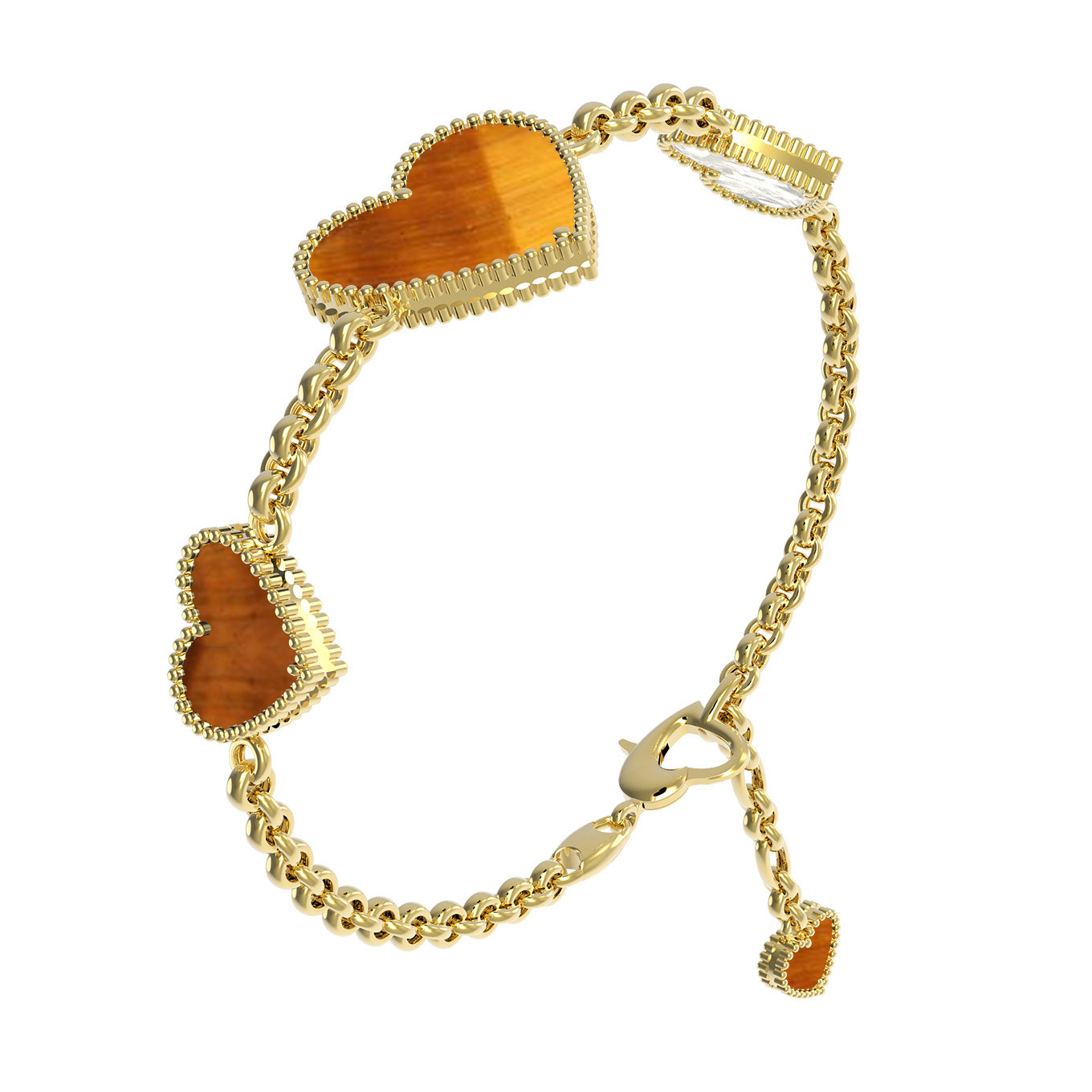 Браслет из лимонного золота c тигровым глазом и перламутром