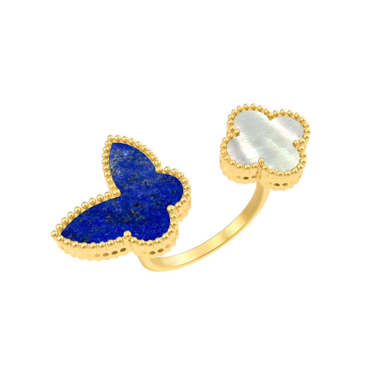 Кольцо из лимонного золота c лазуритом и перламутром