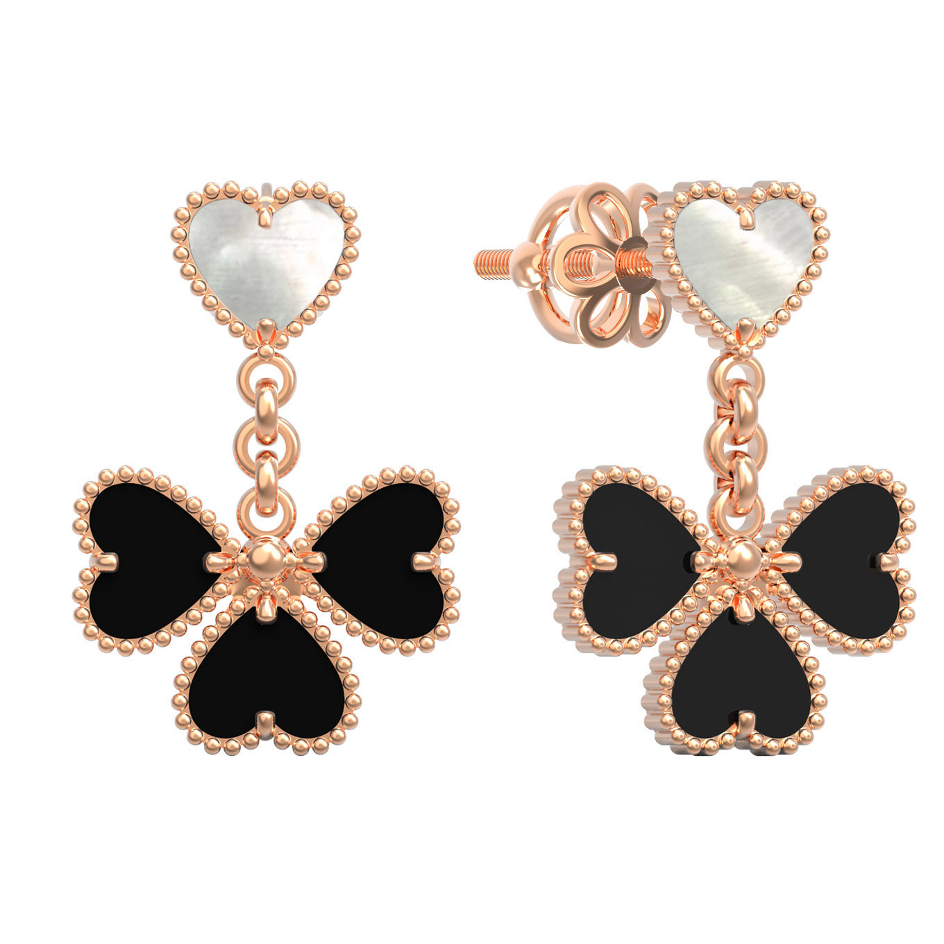 Серьги из золота c ониксом и перламутром