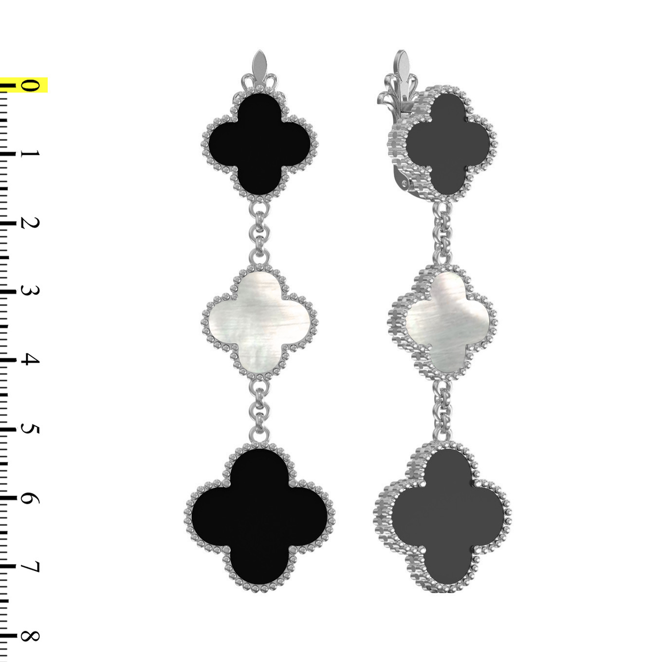 Серьги из белого золота c ониксом и перламутром