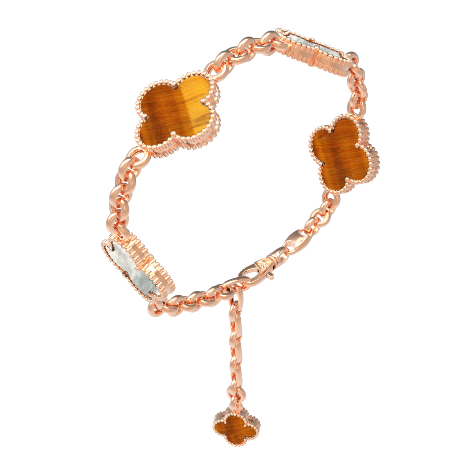Браслет из золота c тигровым глазом и перламутром