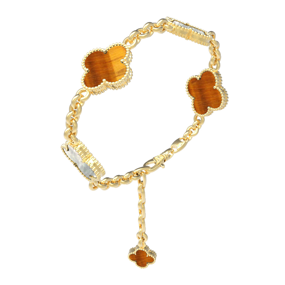 Браслет из лимонного золота c тигровым глазом и перламутром