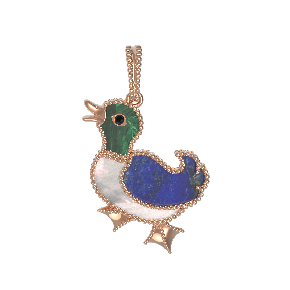 Подвеска из золота c эмаль, лазуритом, малахитом и перламутром