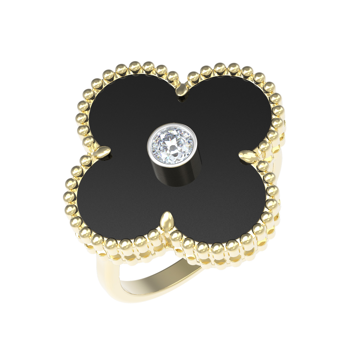 Кольцо из лимонного золота c бриллиантами и ониксом