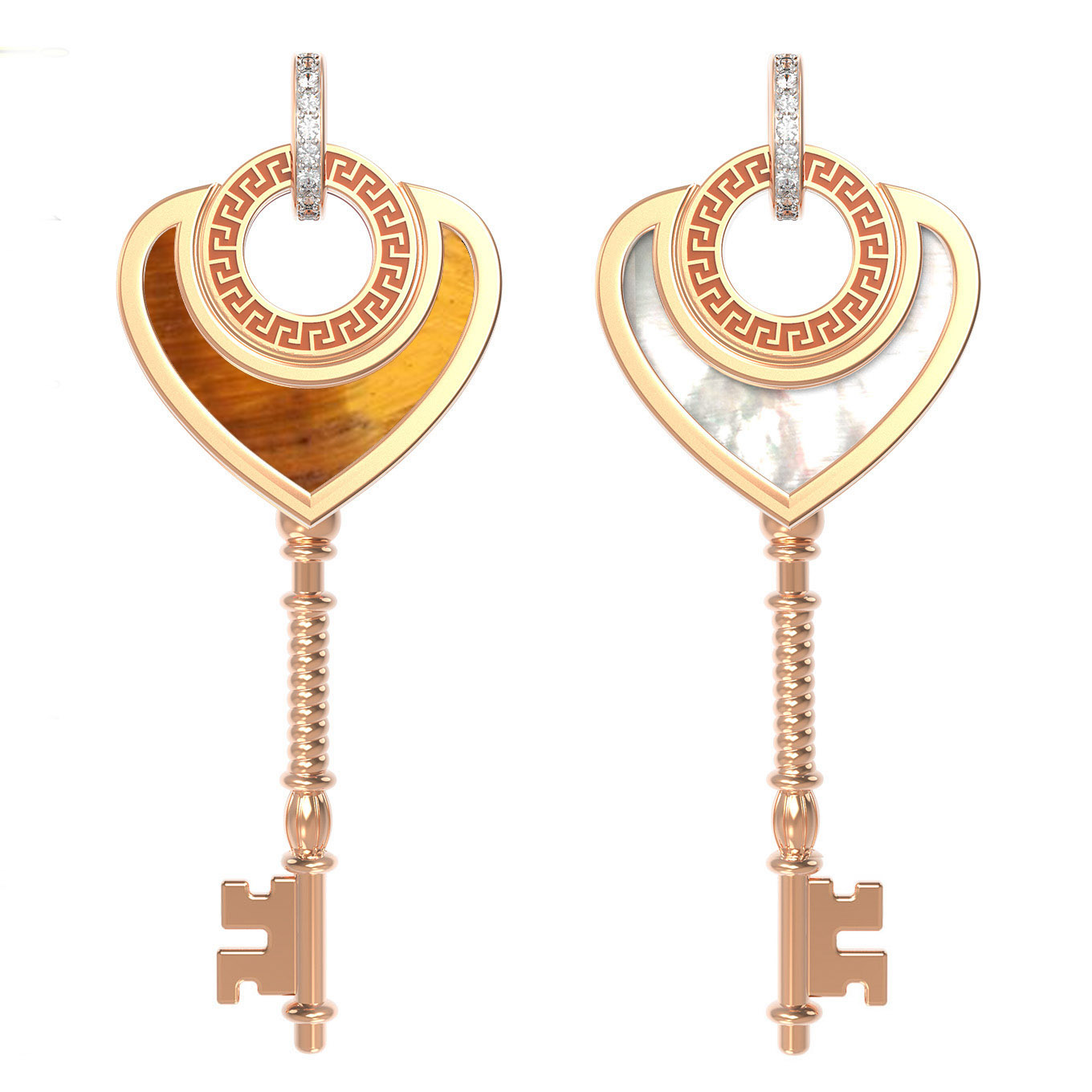 • Подвеска из лимонного золота c фианитом, тигровым глазом и перламутром