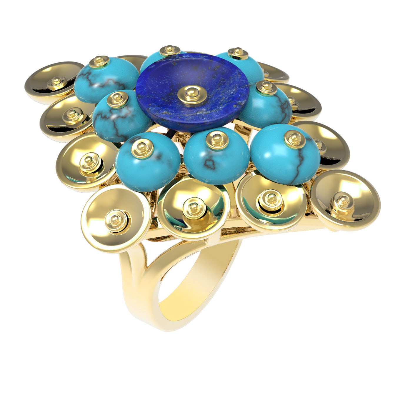 Кольцо из лимонного золота c бирюзой и лазуритом