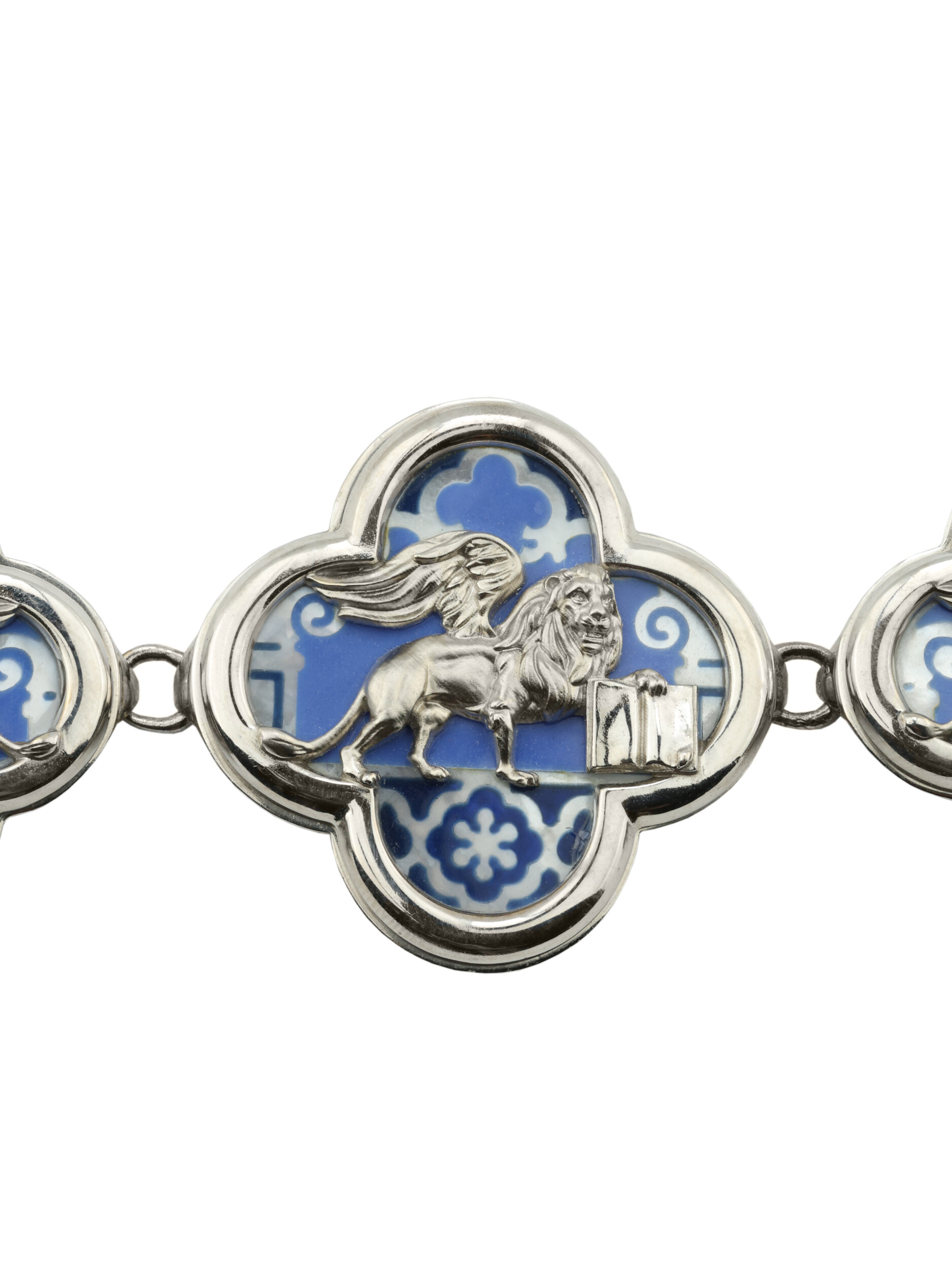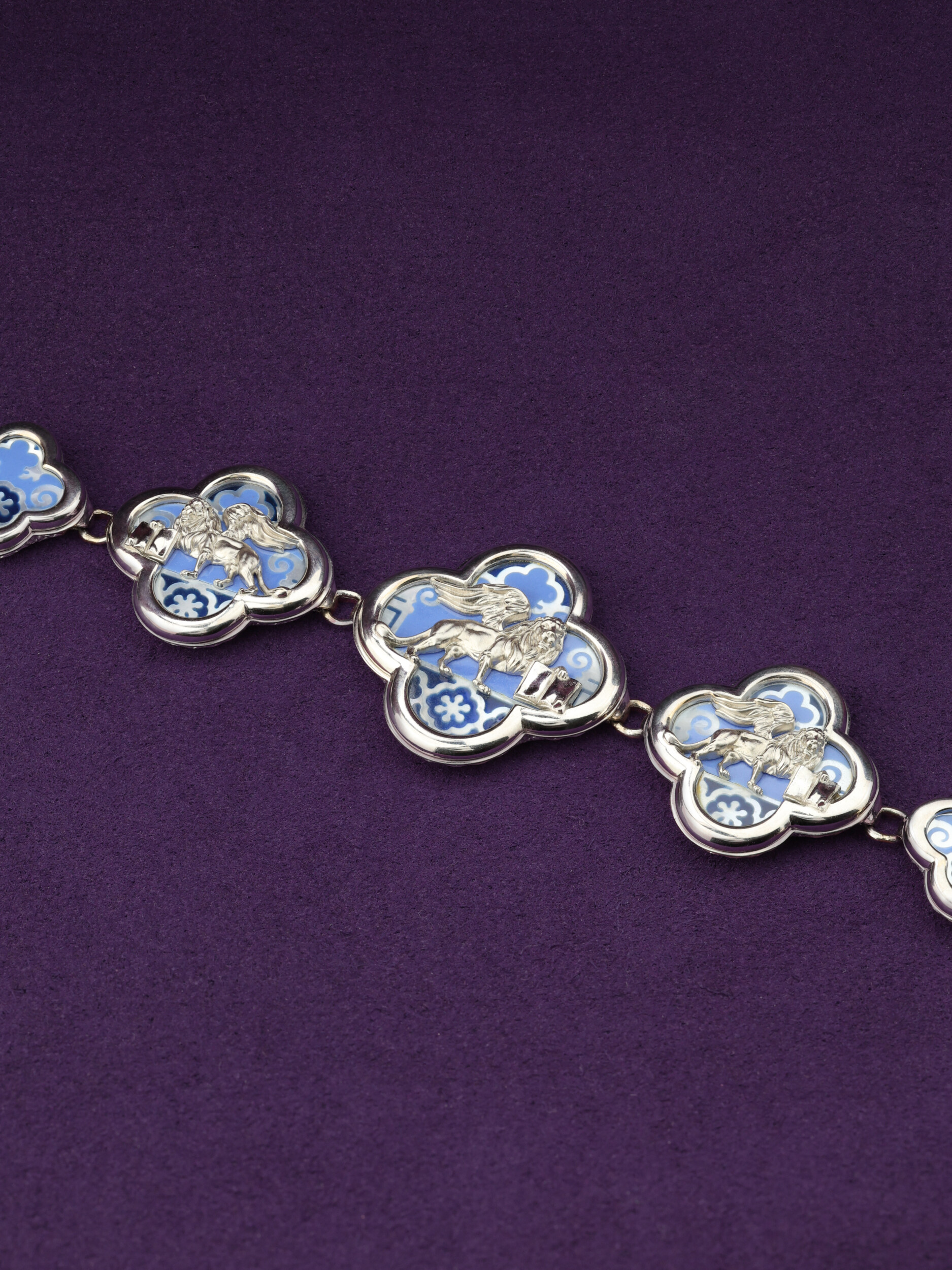 Браслет из белого золота c эмаль, жемчугом и перламутром