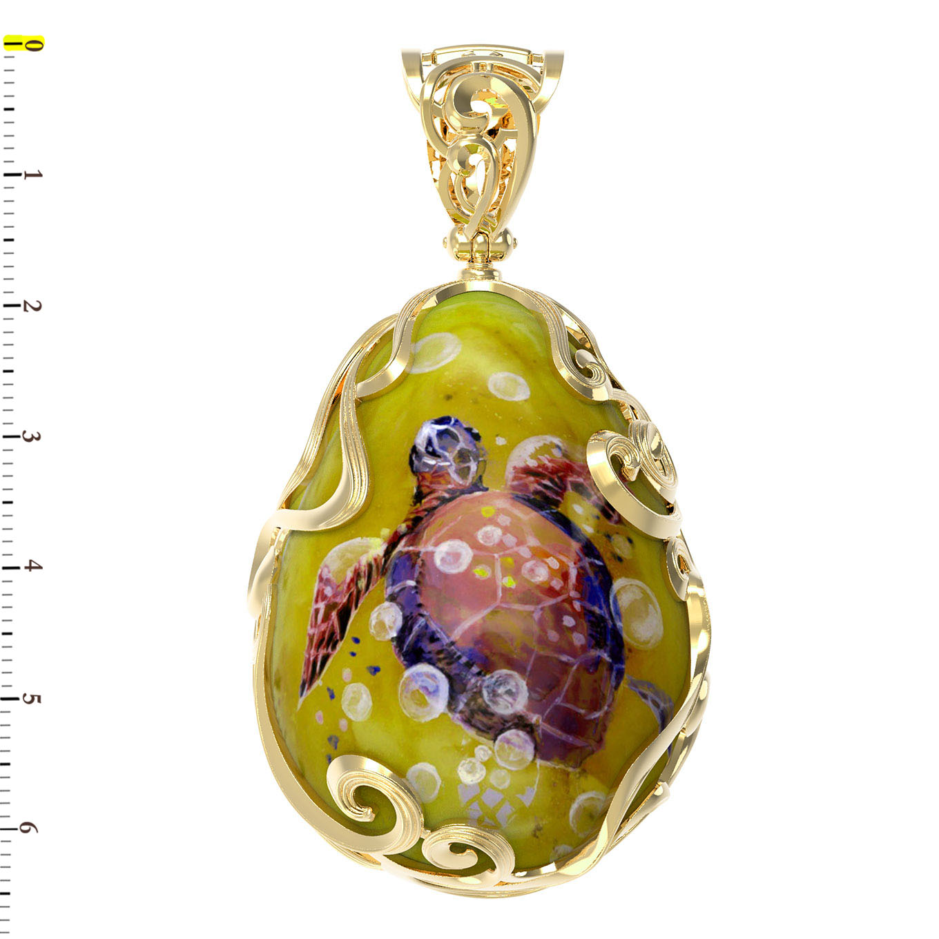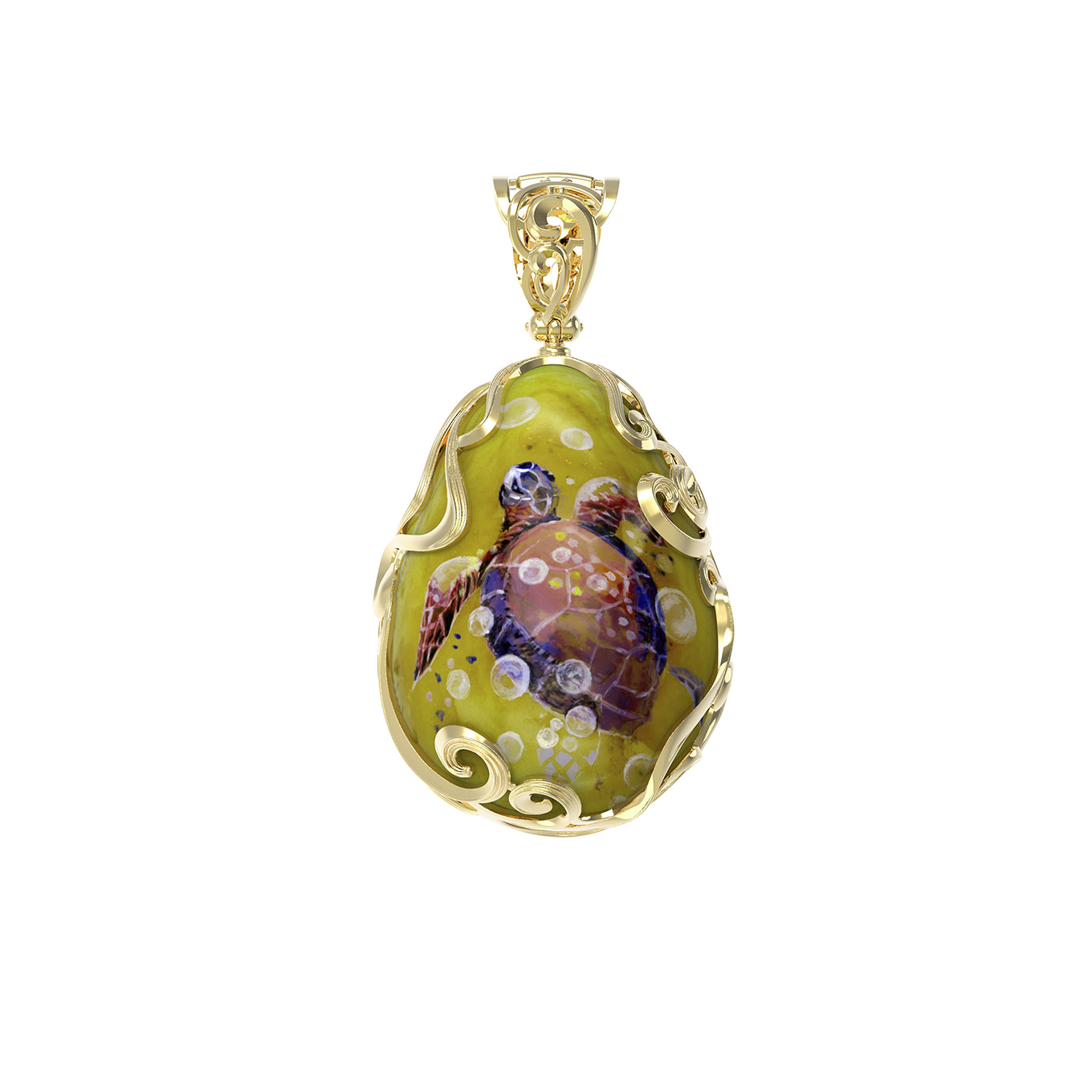 Подвеска из лимонного золота c росписным янтарём