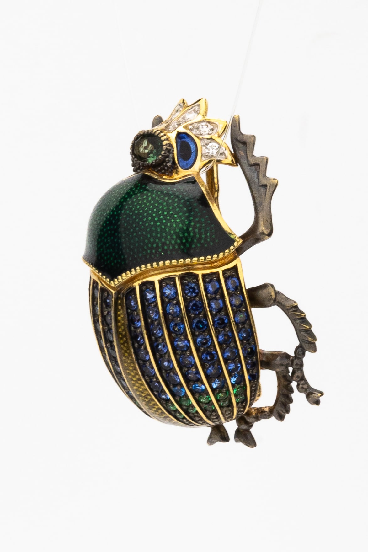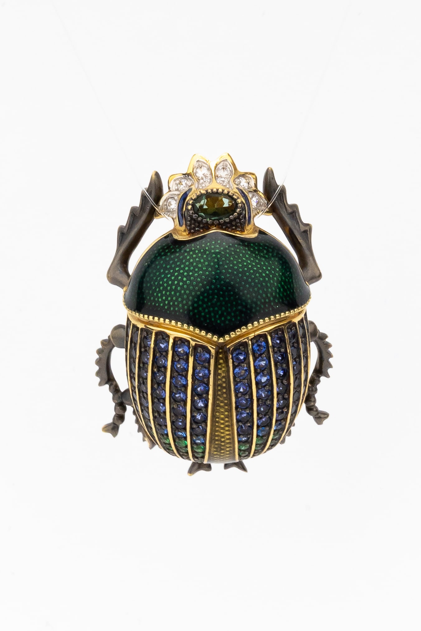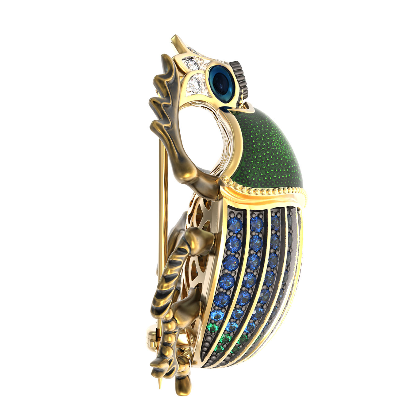 Брошь из лимонного золота c эмаль, фианитом и турмалином