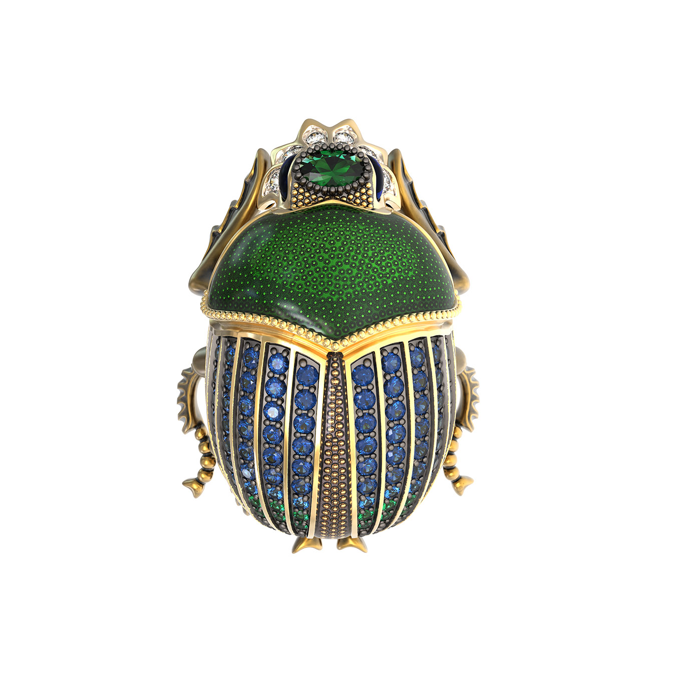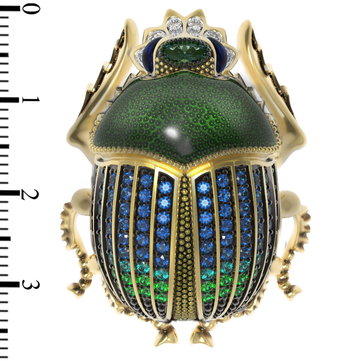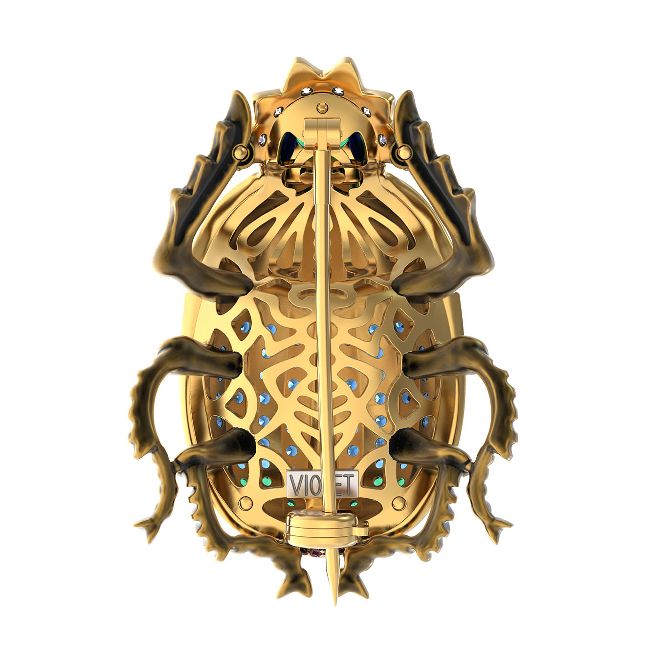 Брошь из лимонного золота c эмаль, фианитом и турмалином
