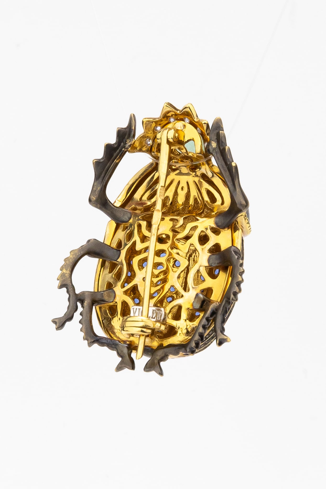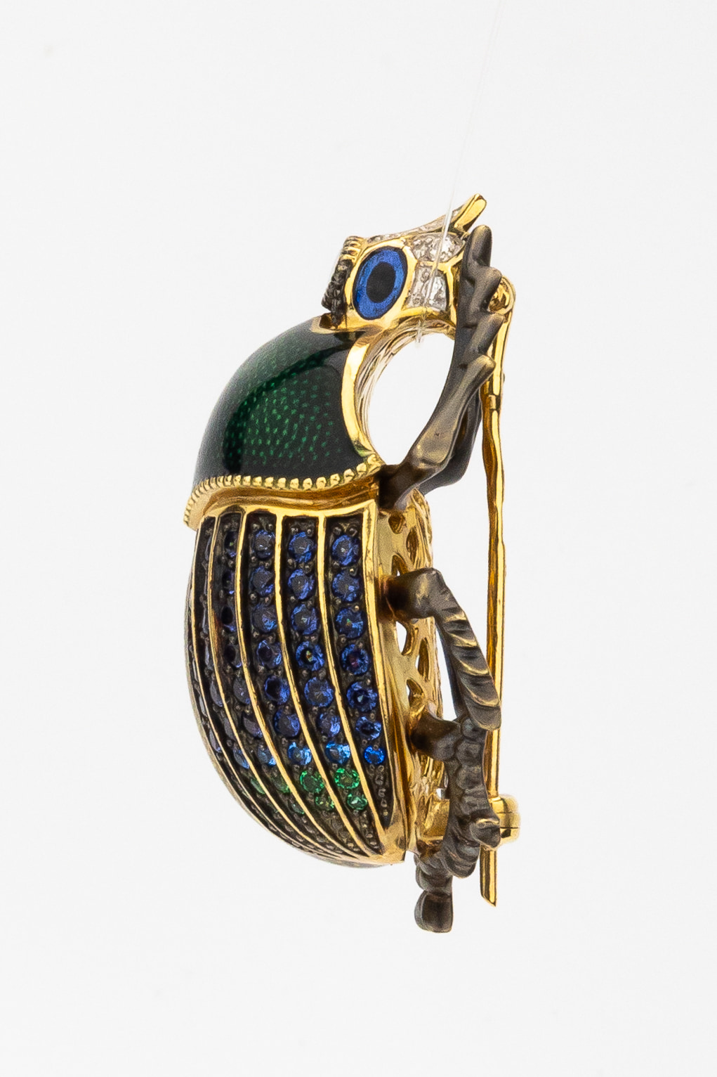 Брошь из лимонного золота c эмаль , фианитом и турмалином