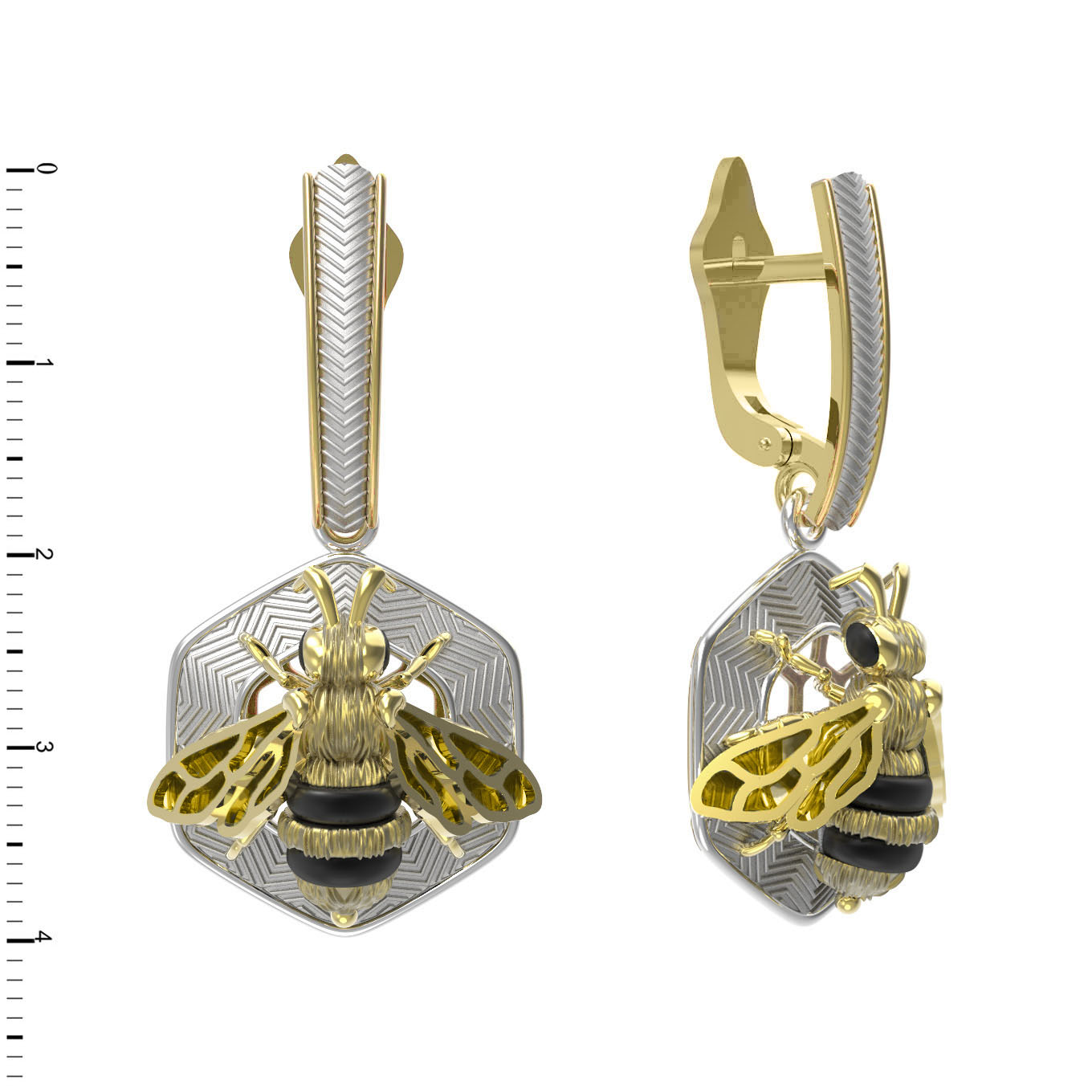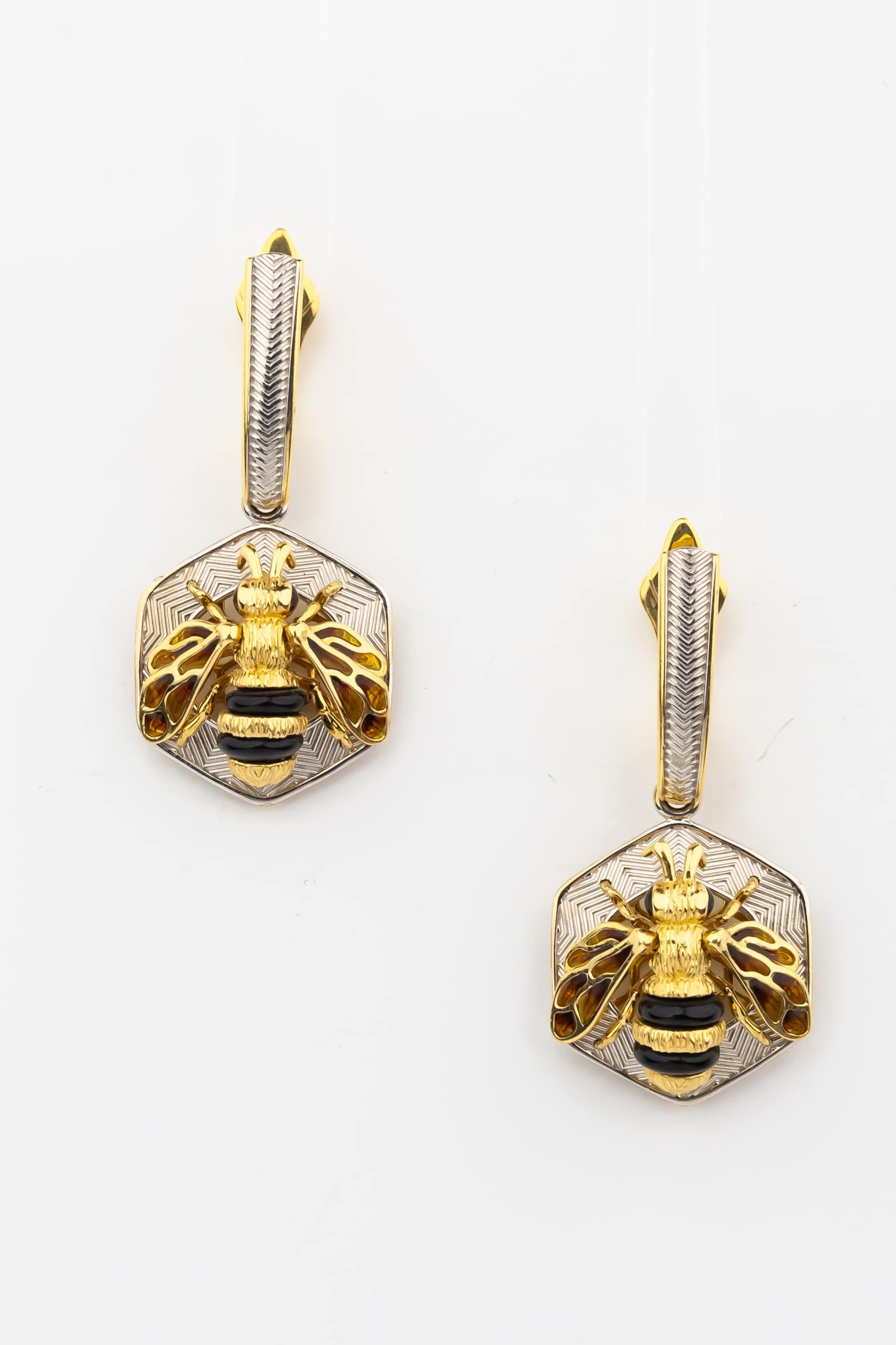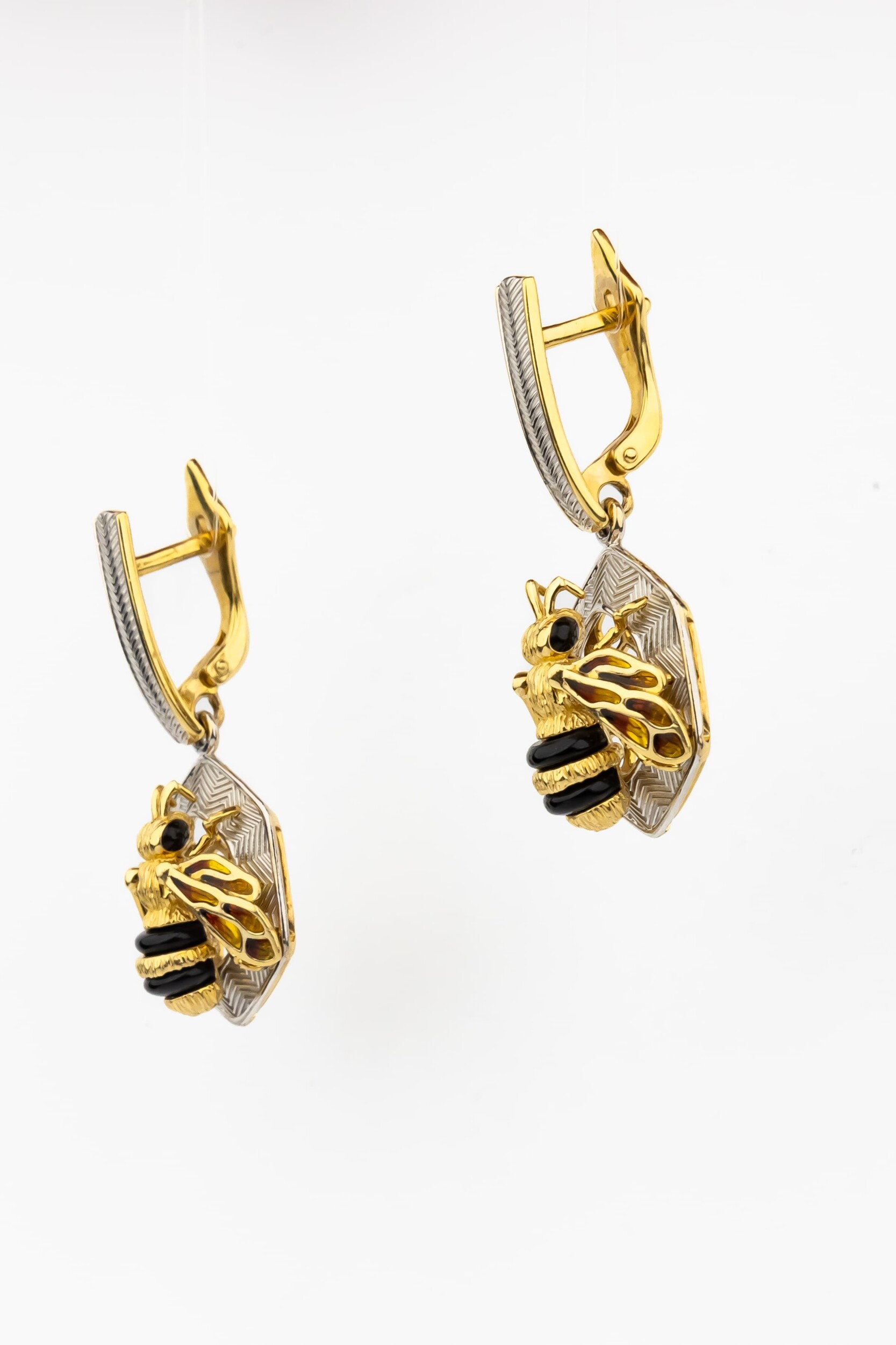 Серьги из лимонного золота c эмаль, ониксом и эмалью
