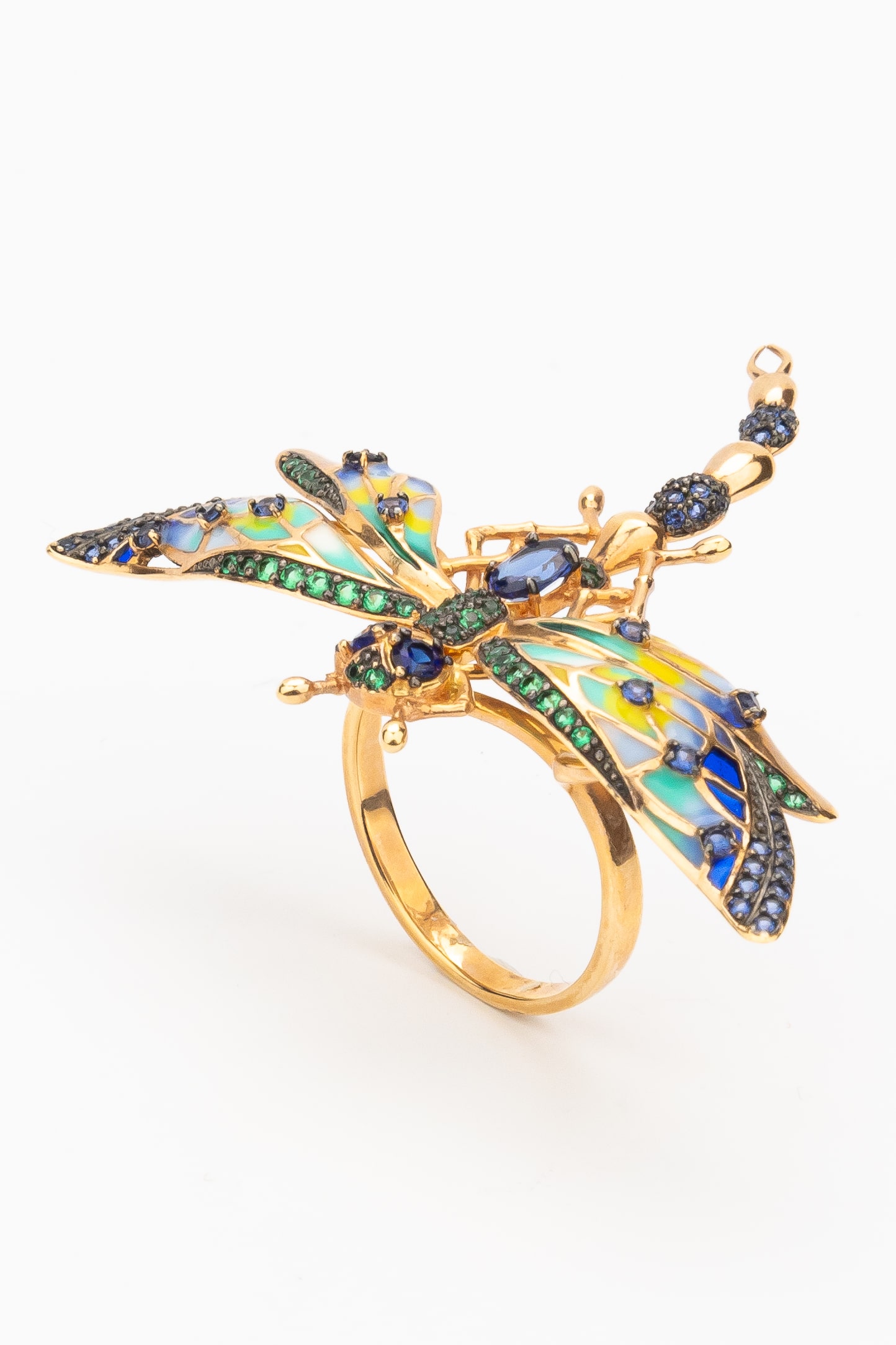 Кольцо из золота c фианитом, сапфиром и эмалью