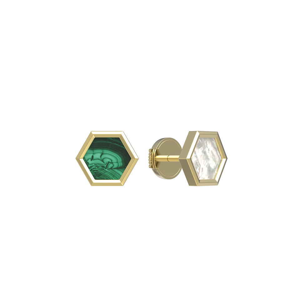 Серьги из лимонного золота c малахитом и перламутром