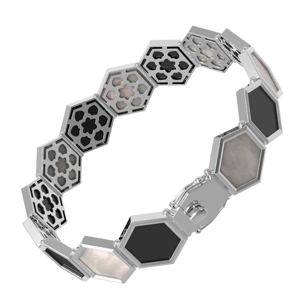 Браслет из белого золота c ониксом и перламутром
