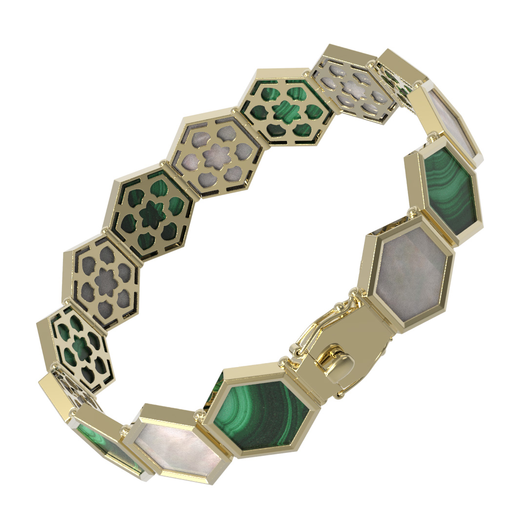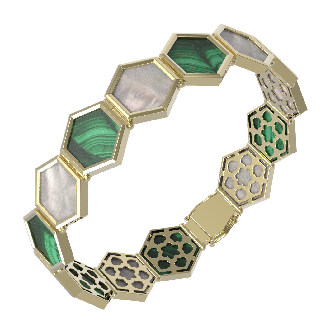 Браслет из лимонного золота c малахитом и перламутром