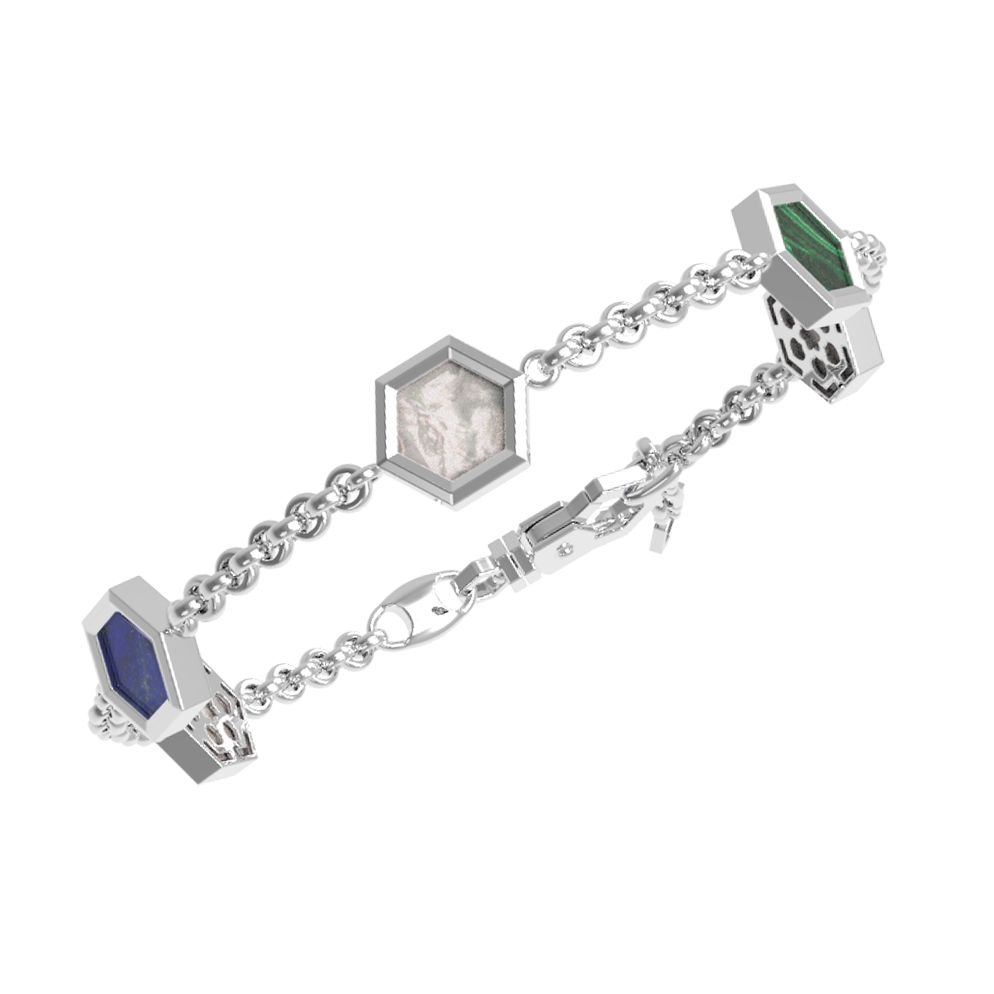 Браслет из белого золота c лазуритом, малахитом и перламутром