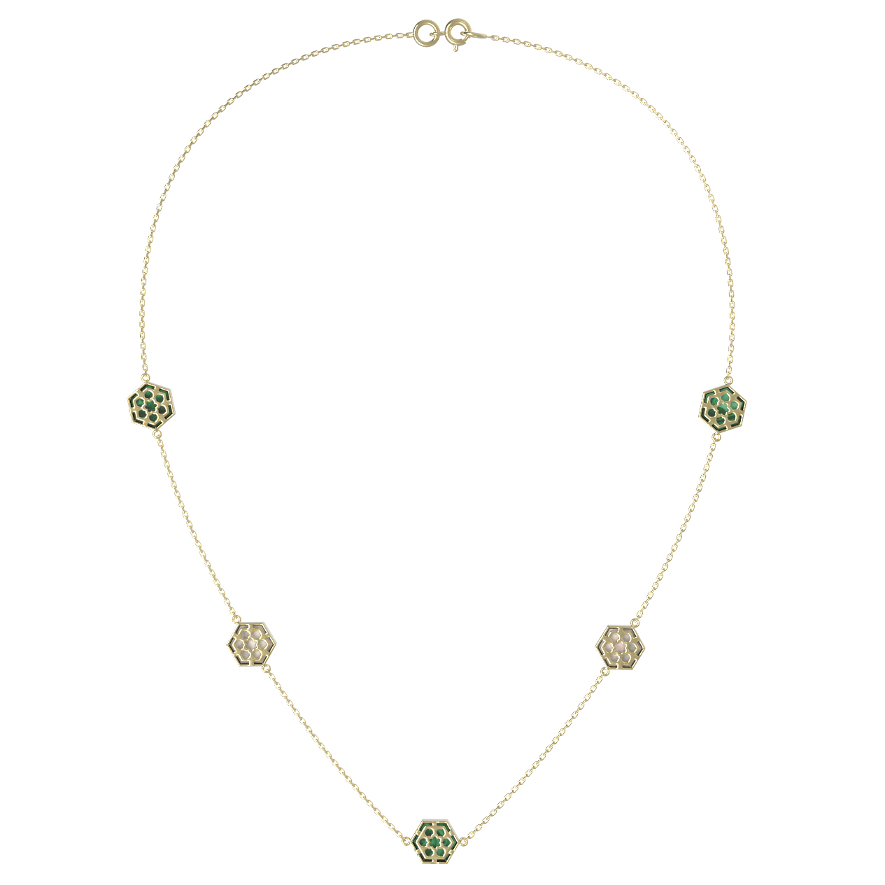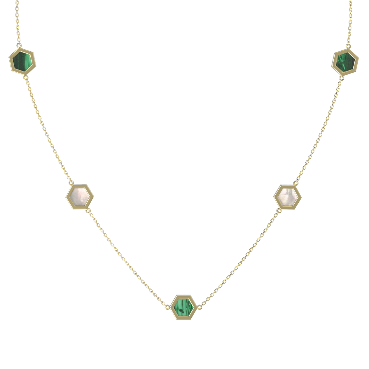 Колье из лимонного золота c малахитом и перламутром