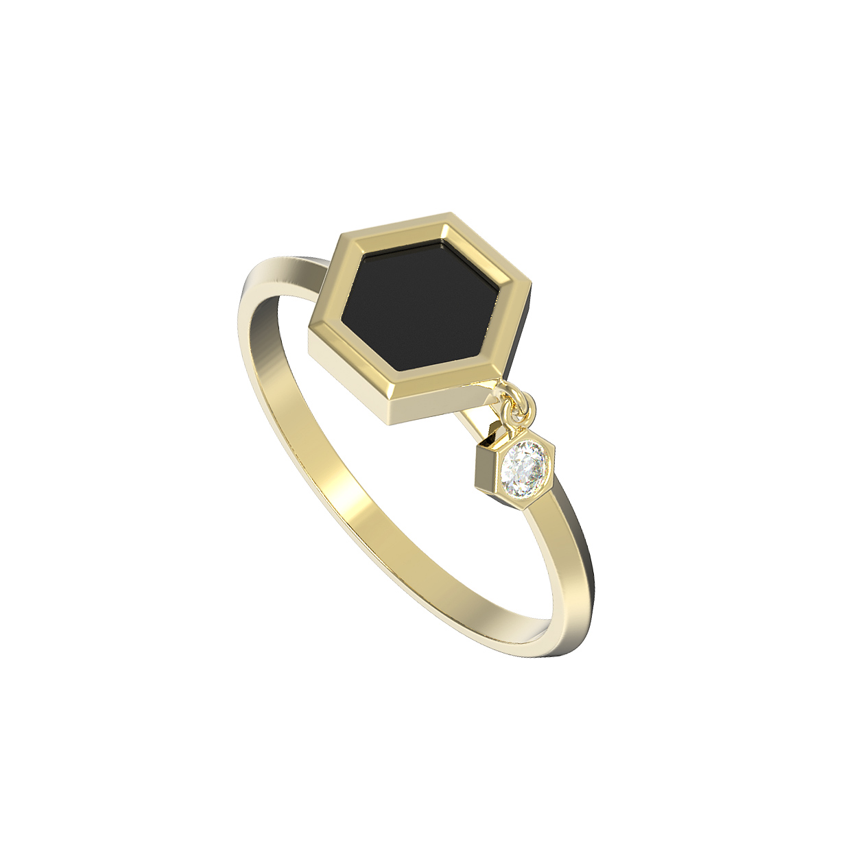 Кольцо из лимонного золота c бриллиантами и ониксом