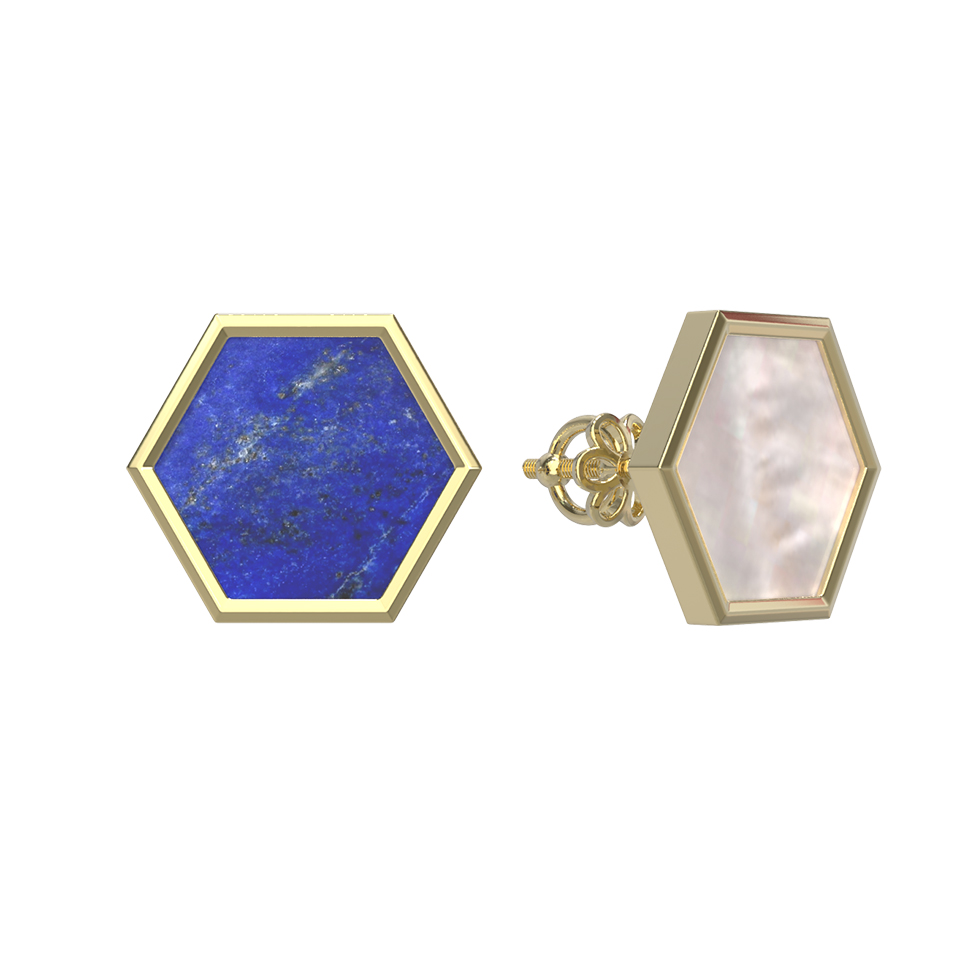 Серьги из лимонного золота c лазуритом и перламутром