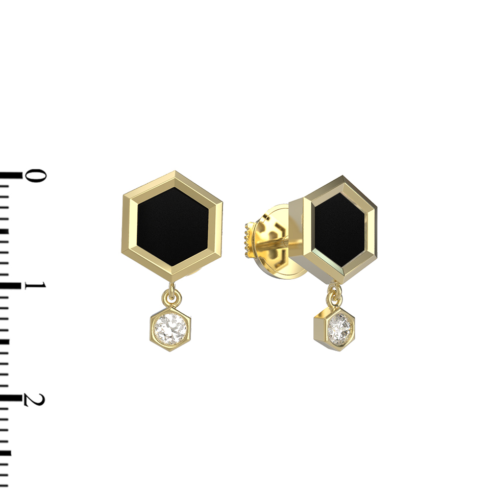 Серьги из лимонного золота c бриллиантами и ониксом