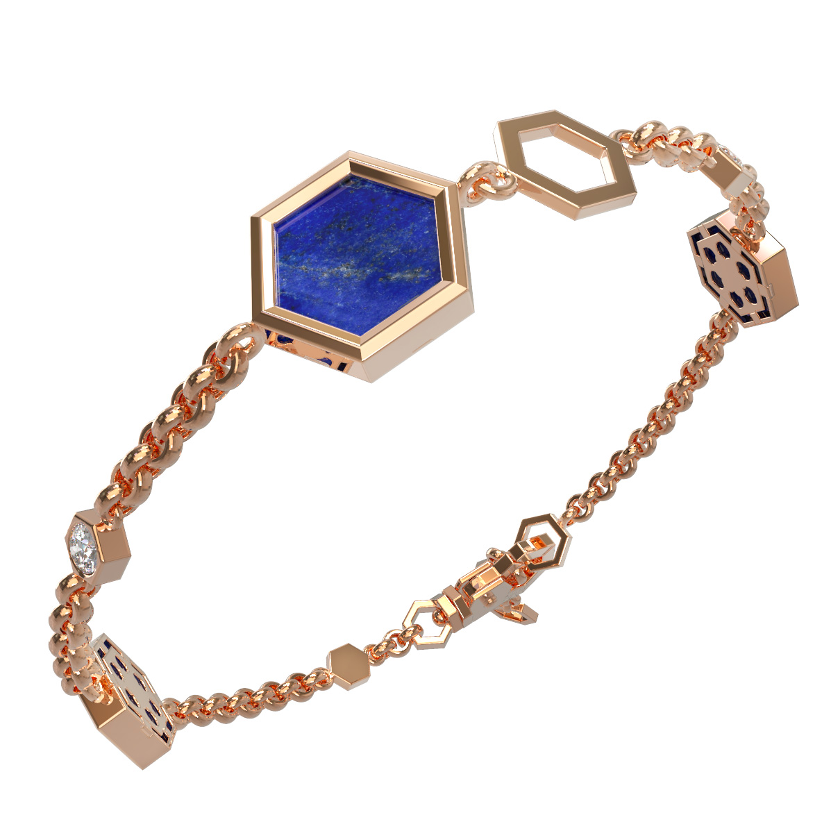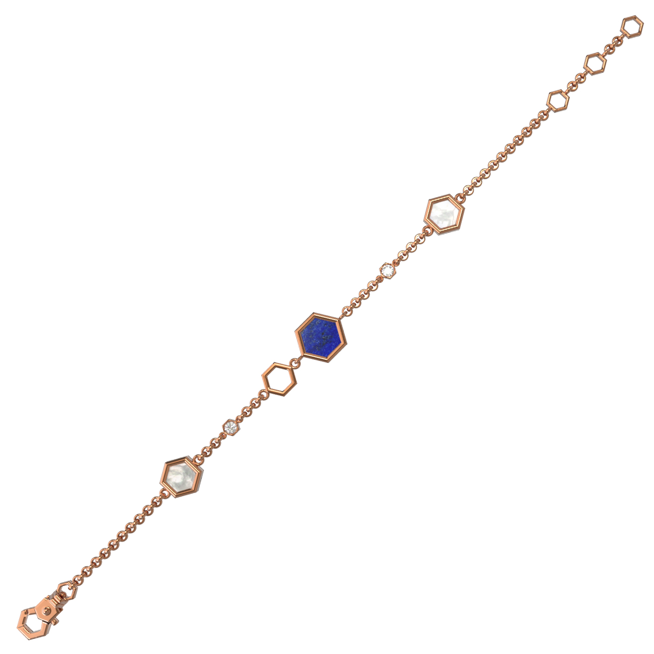 Браслет из золота c бриллиантами, лазуритом и перламутром