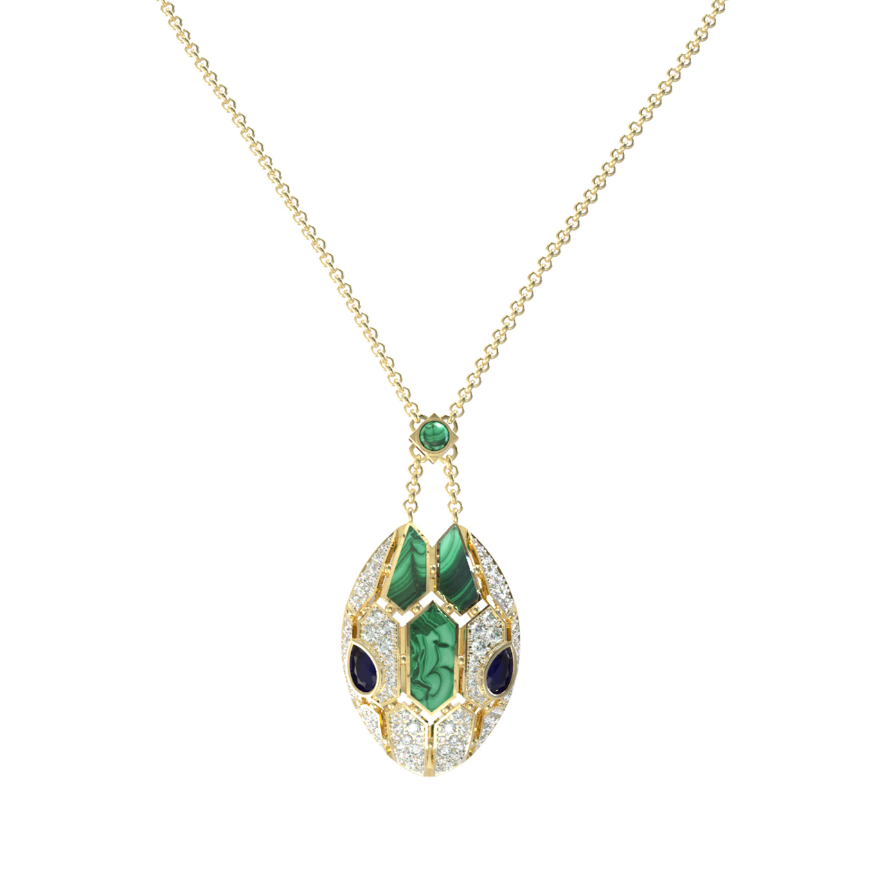 Колье из лимонного золота c бриллиантами, сапфиром и малахитом