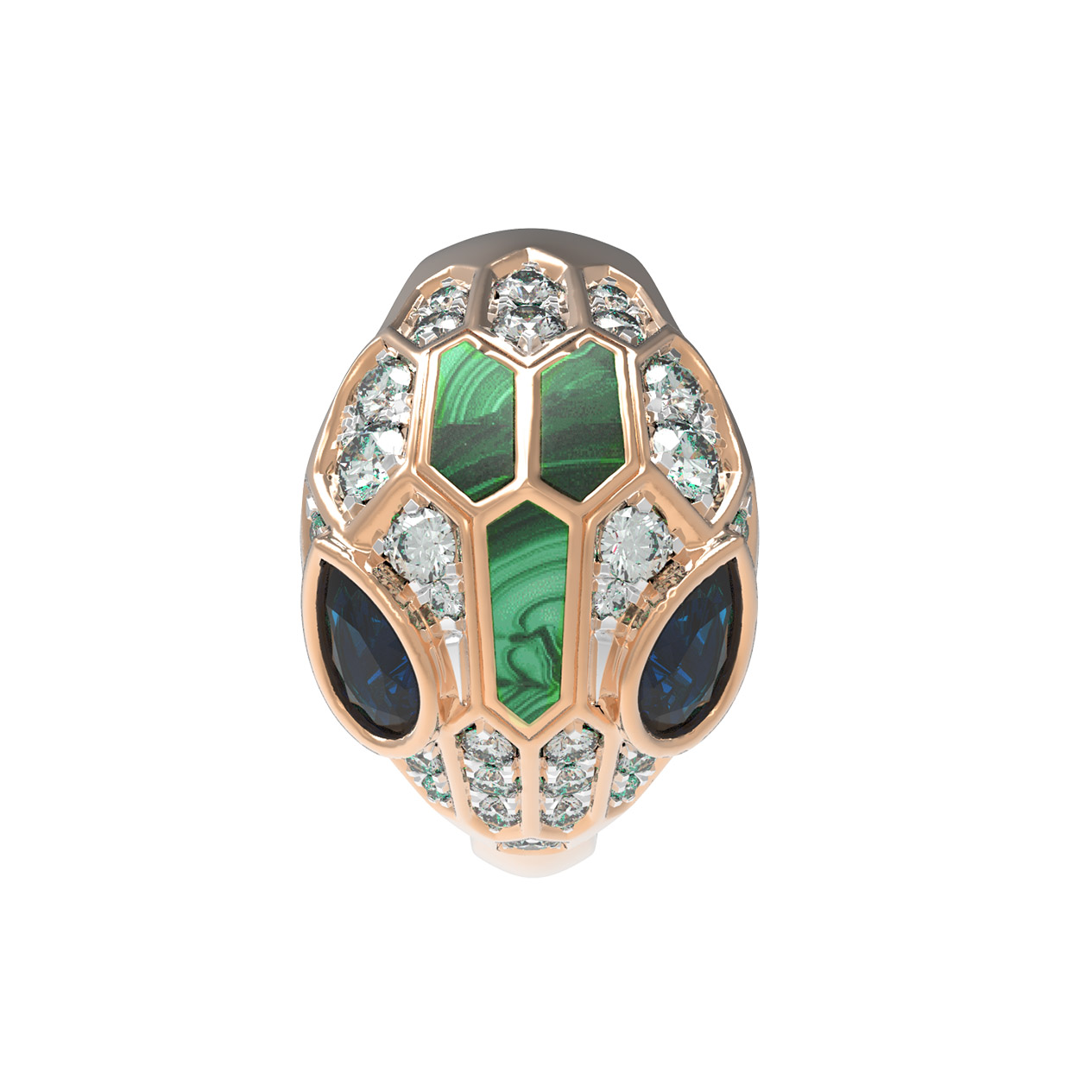 Кольцо из золота c бриллиантами, сапфиром и малахитом